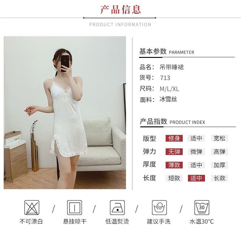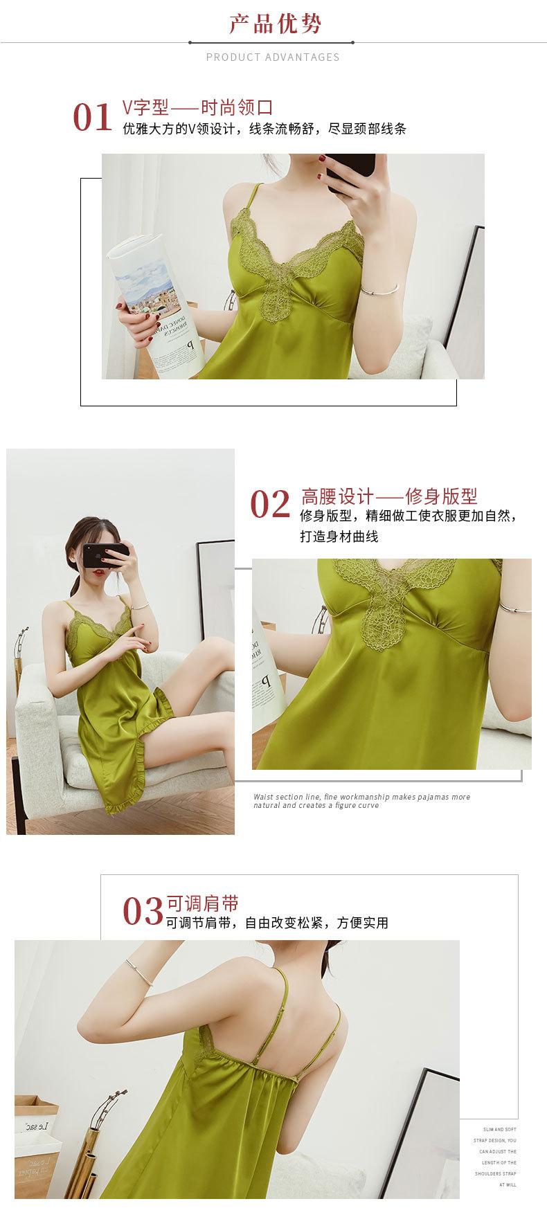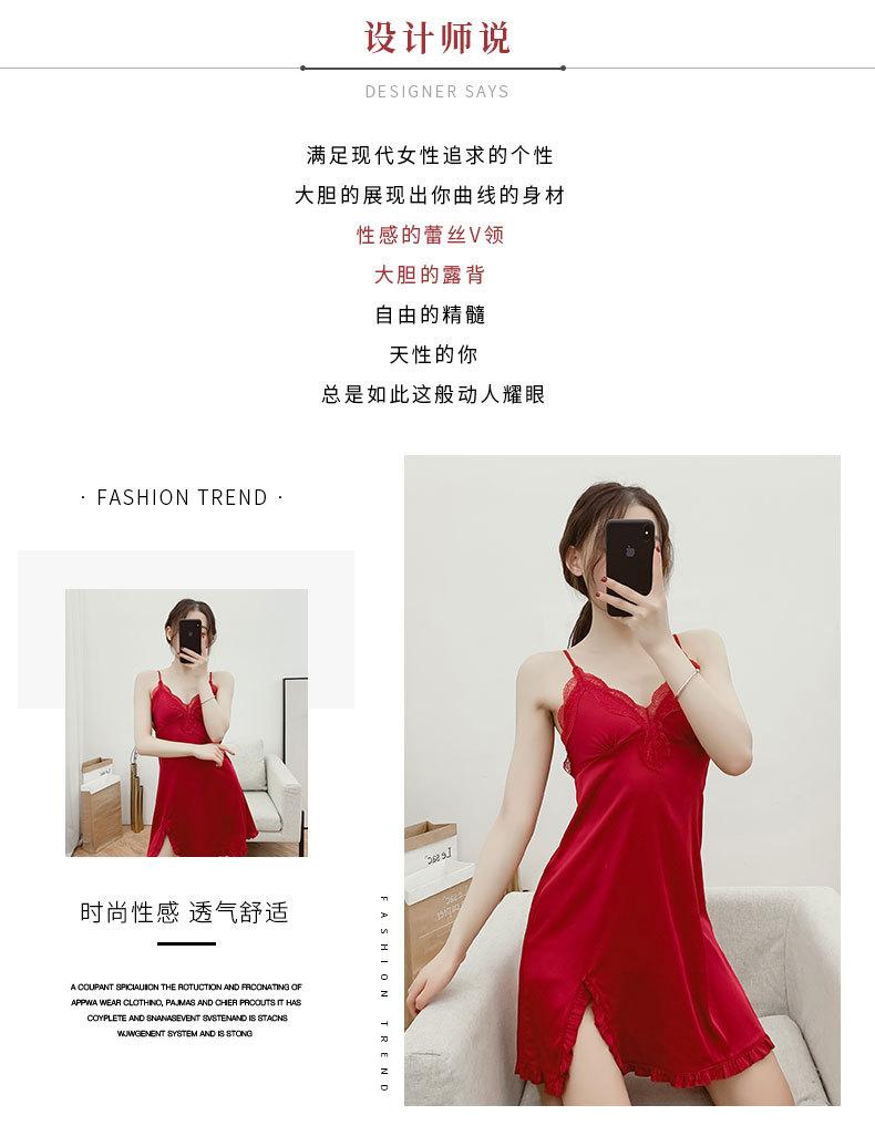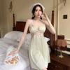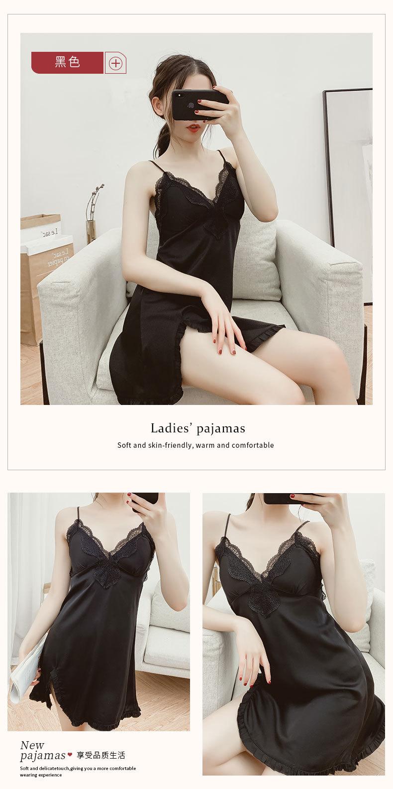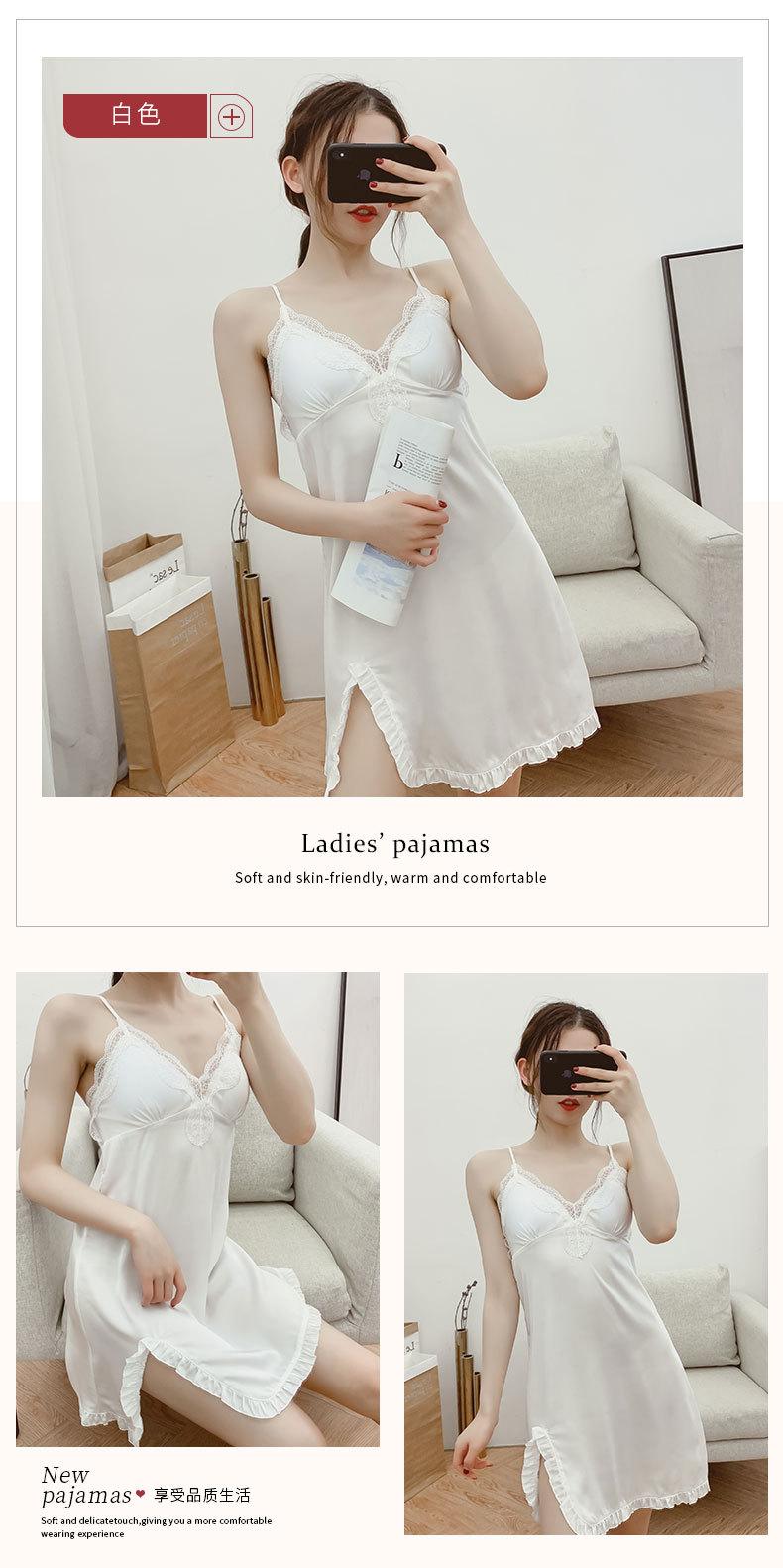 Nuevo Ropa de Casa Sexy con Tirantes de Satén Chifón para Mujer, Varios Colores Disponibles, Sencillo, Fresco y Transpirable Falda con Tirantes de Manga Larga