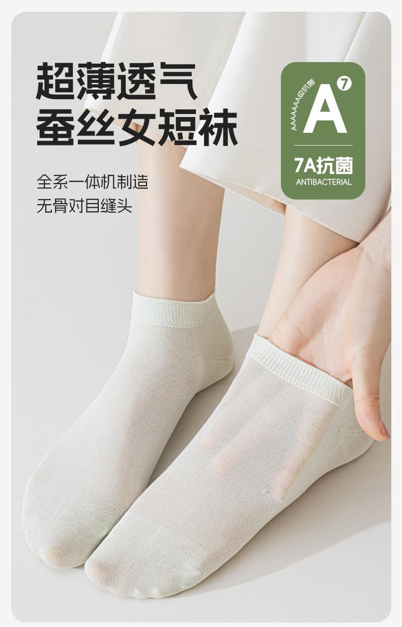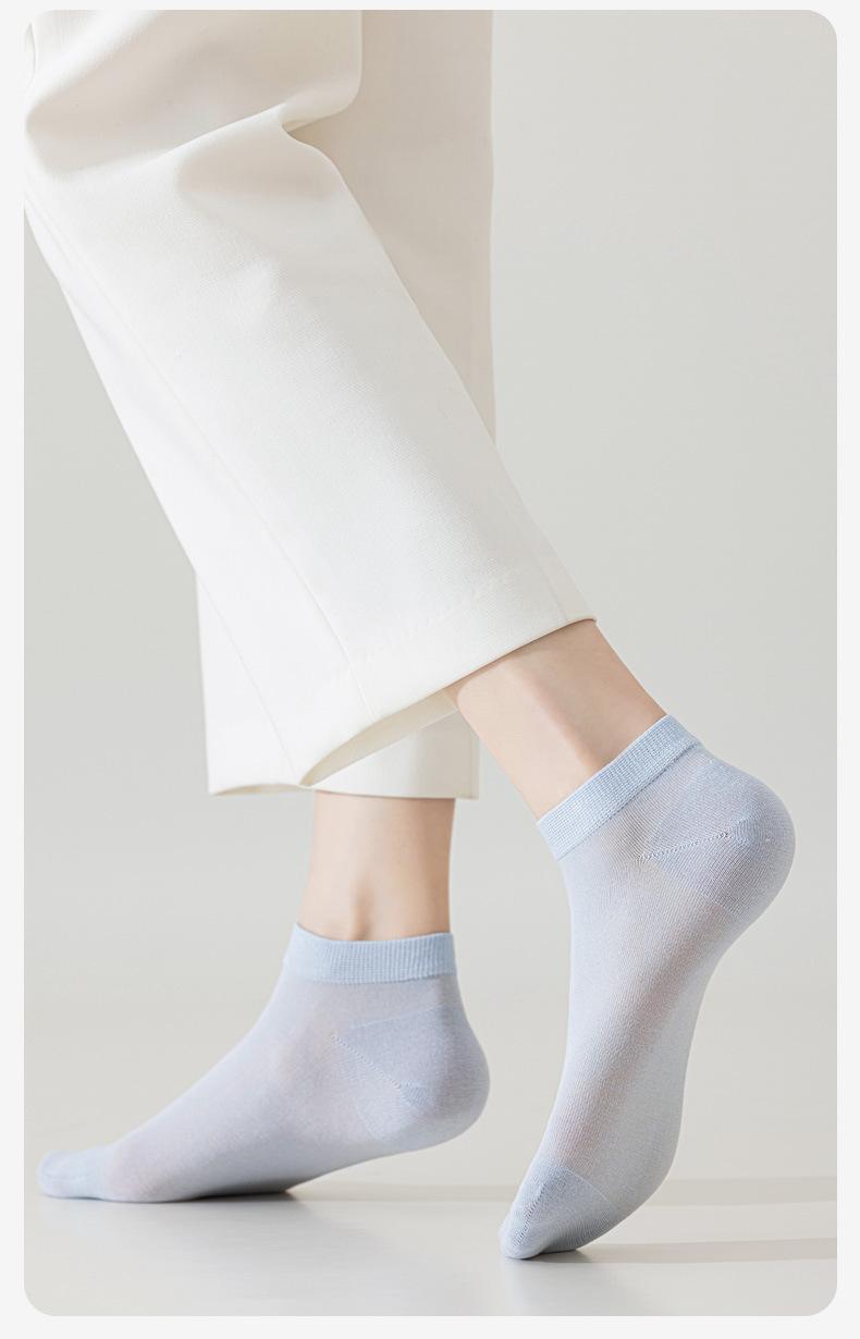 Calcetines de Verano Ultradelgados para Mujer, Calcetines de Seda de Morera, Calcetines Bajos Versátiles de Color Puro Transpirables para Mujer, Calcetines Antibacterianos de Modal para Mujer