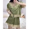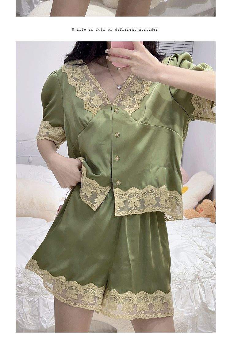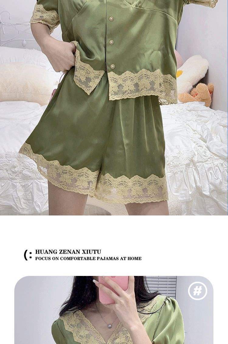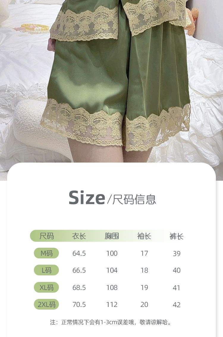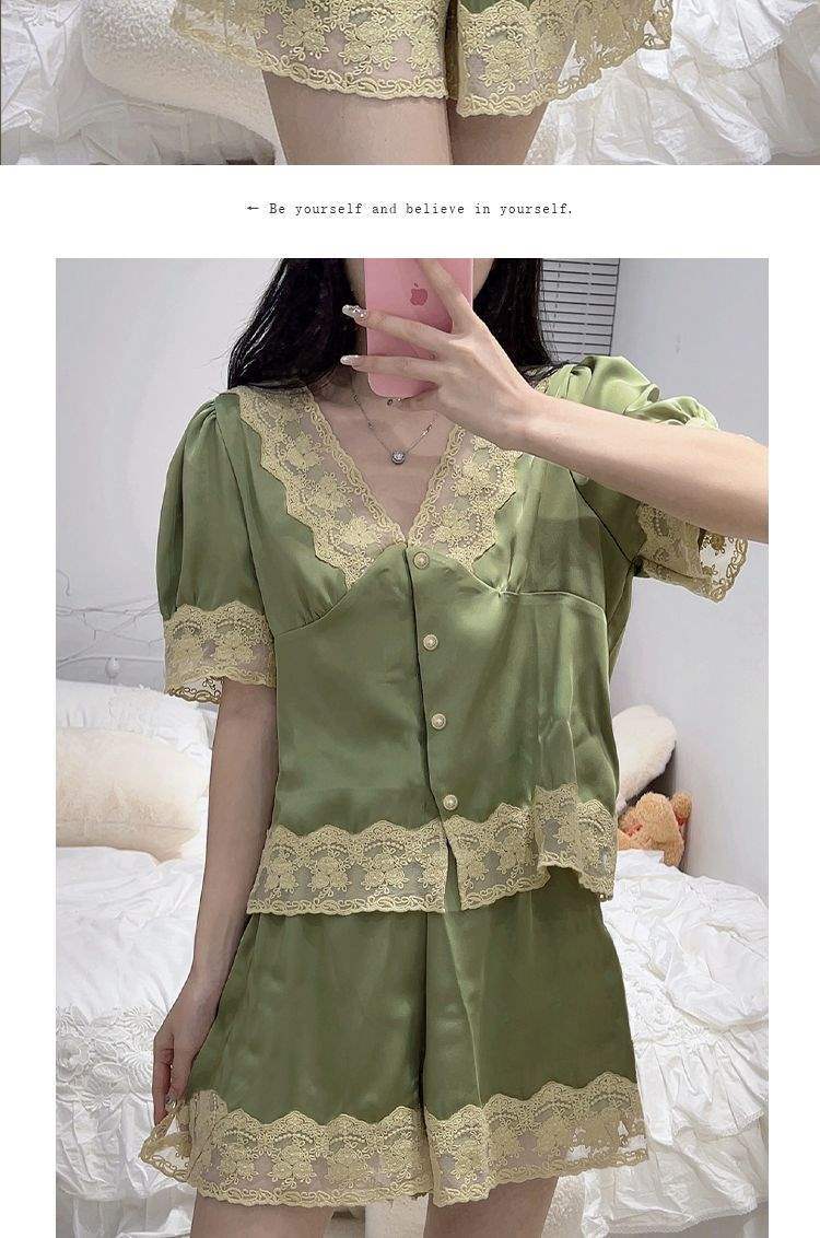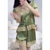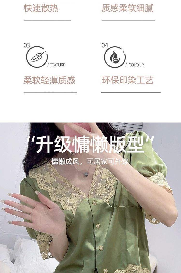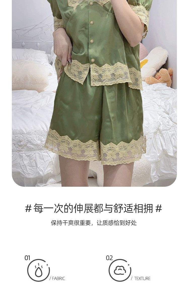 Pijama de Encaje Estilo Francés para Mujer Verano Delgado Fresco Seda de Hielo Manga Corta Popular en Internet Traje de Ropa para el Hogar para Niña