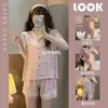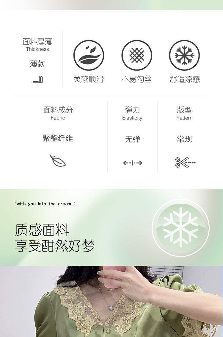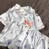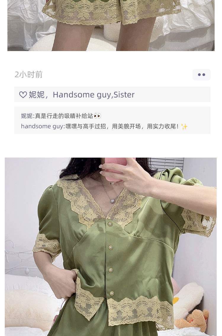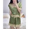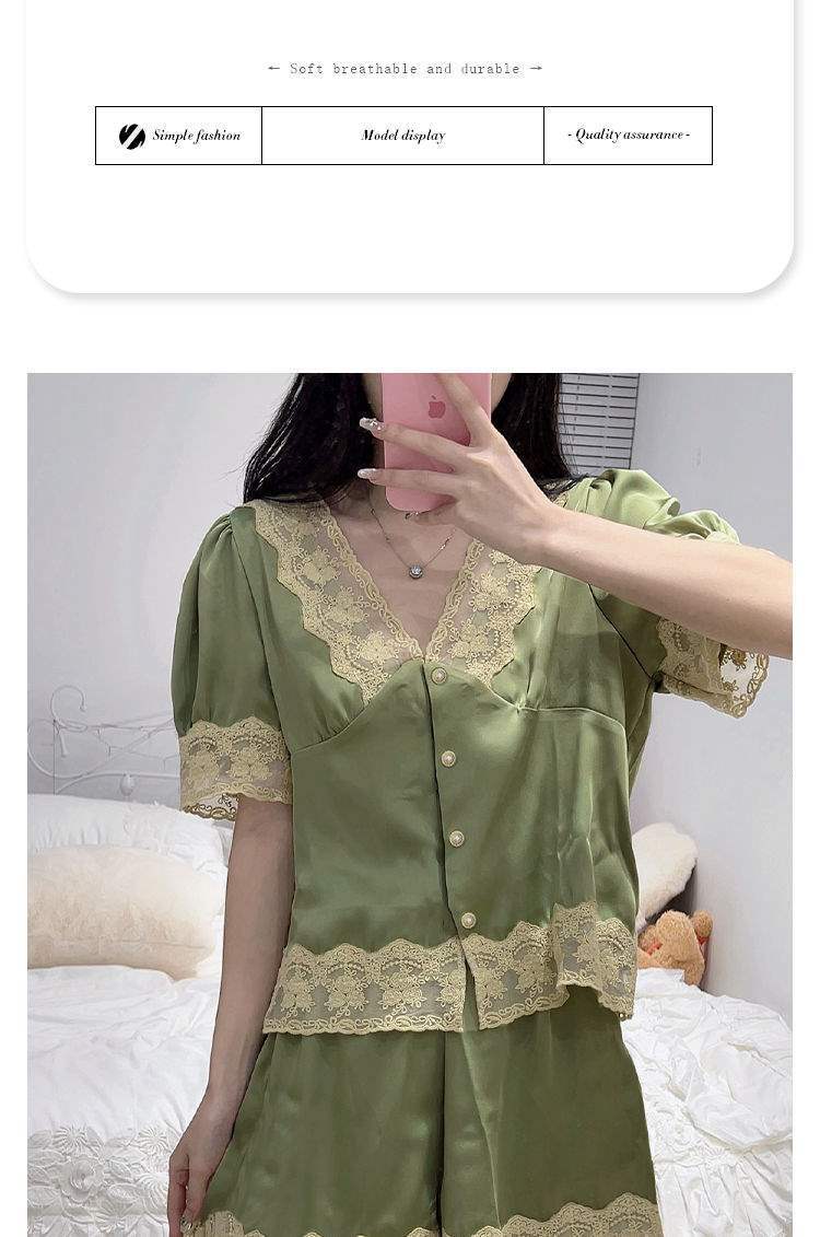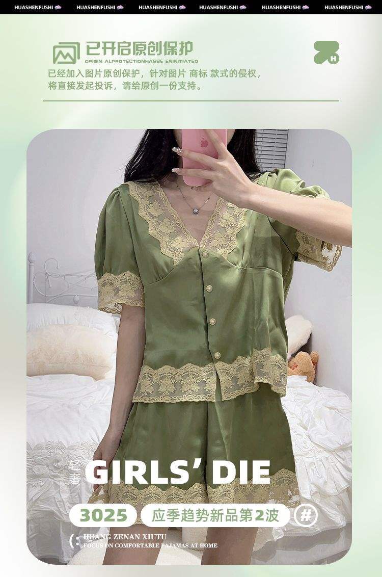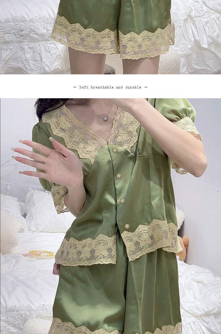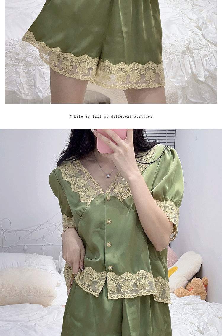 Pijama de Encaje Estilo Francés para Mujer Verano Delgado Fresco Seda de Hielo Manga Corta Popular en Internet Traje de Ropa para el Hogar para Niña