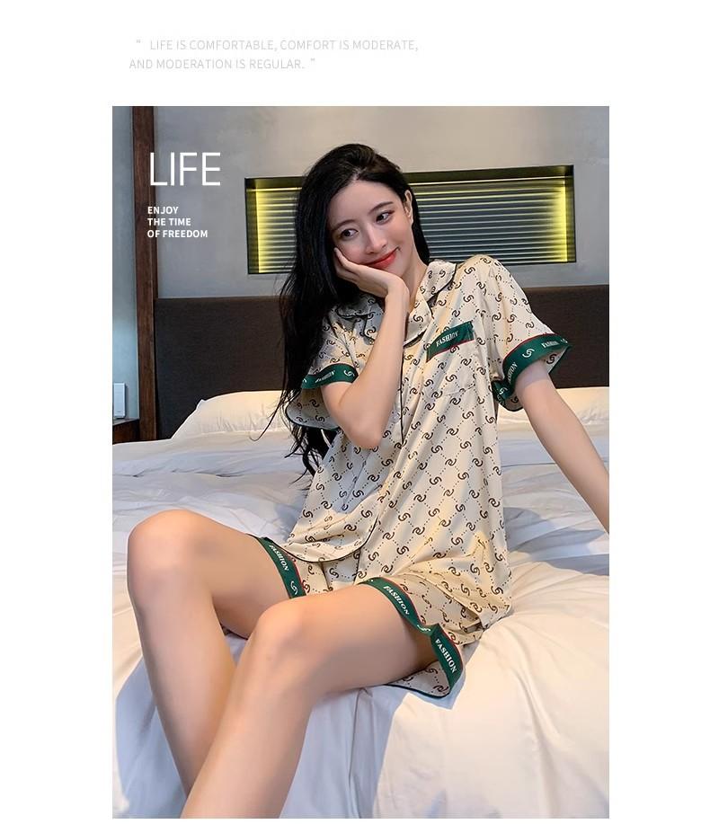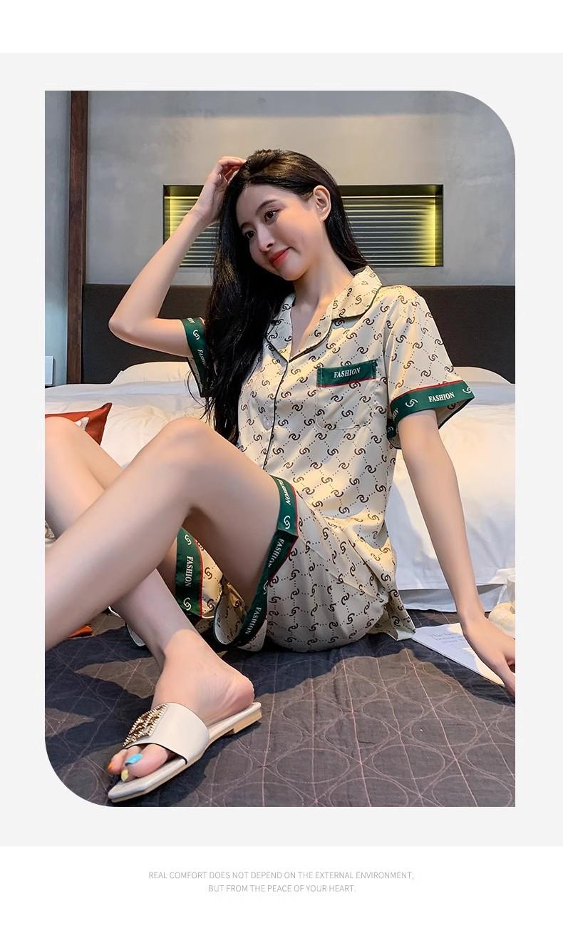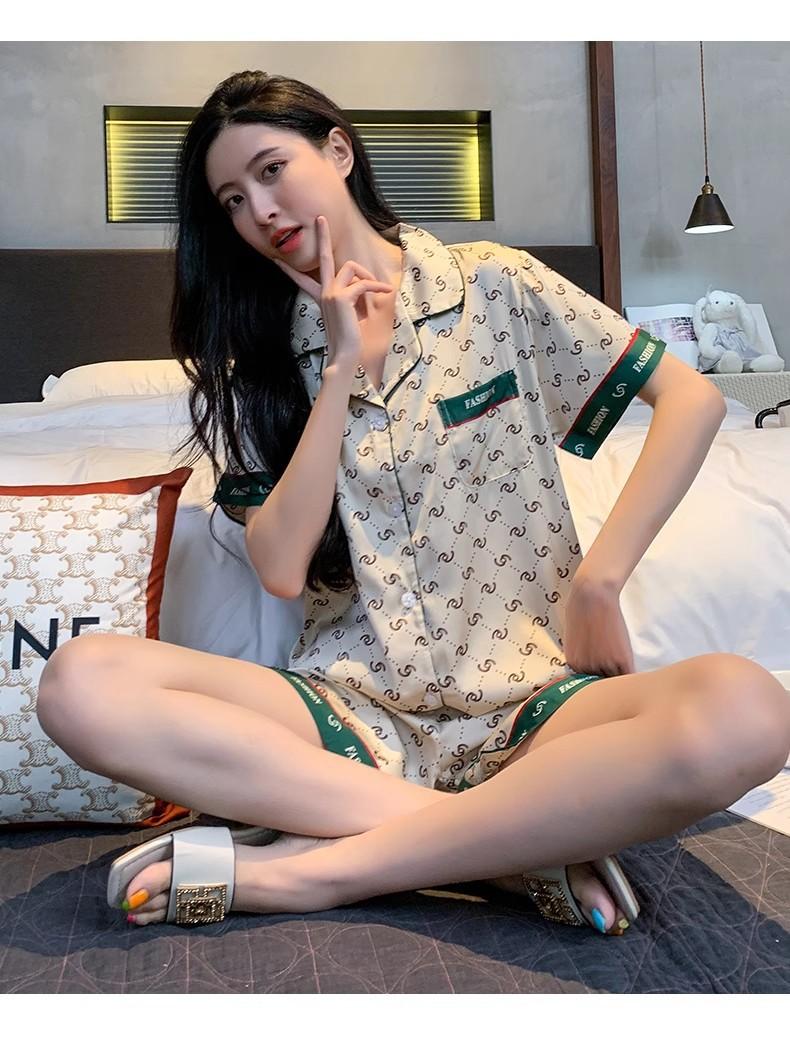 Compra Pijamas de Verano Nuevos 2025 para Mujer Verano Seda de Hielo Manga Corta Moda de Alta Gama Imitación Seda Conjunto para Estar en Casa al por mayor en Joom.pro