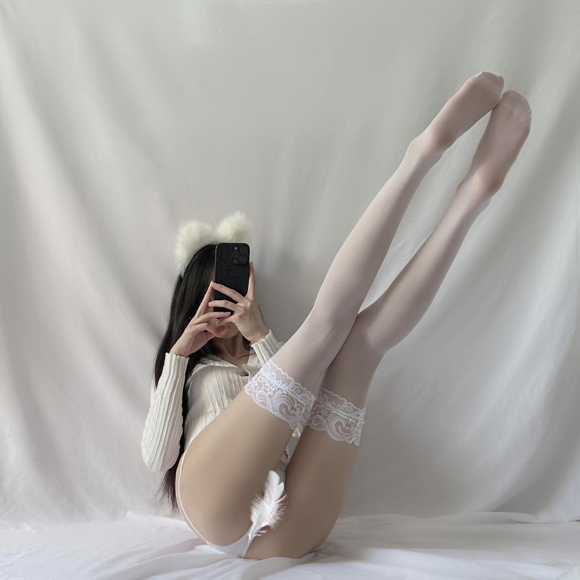 Curruca Flor Primavera, Verano y Otoño Medias Sexy Blancas y Negras Piernas Sexy Hermosas Estilo Japonés Chica Suave Linda Medias Largas de Encaje hasta el Muslo