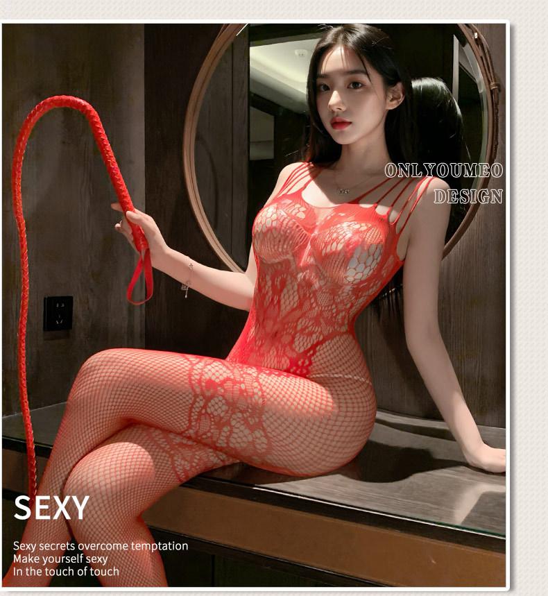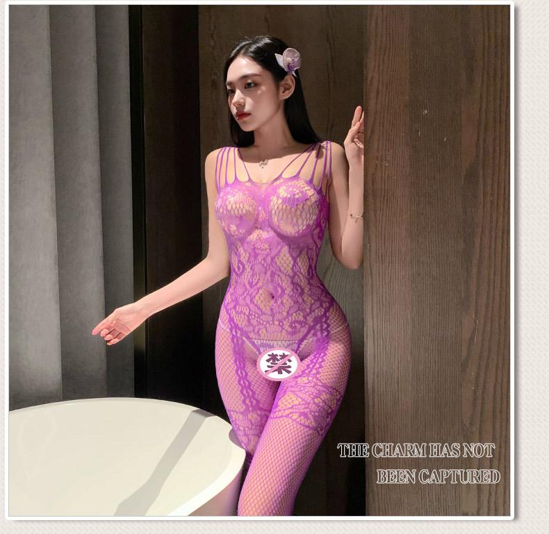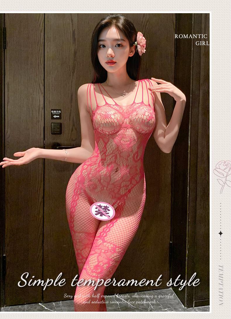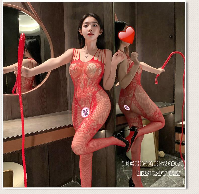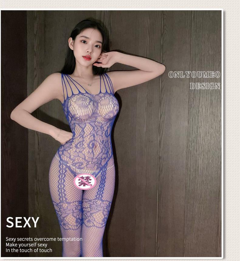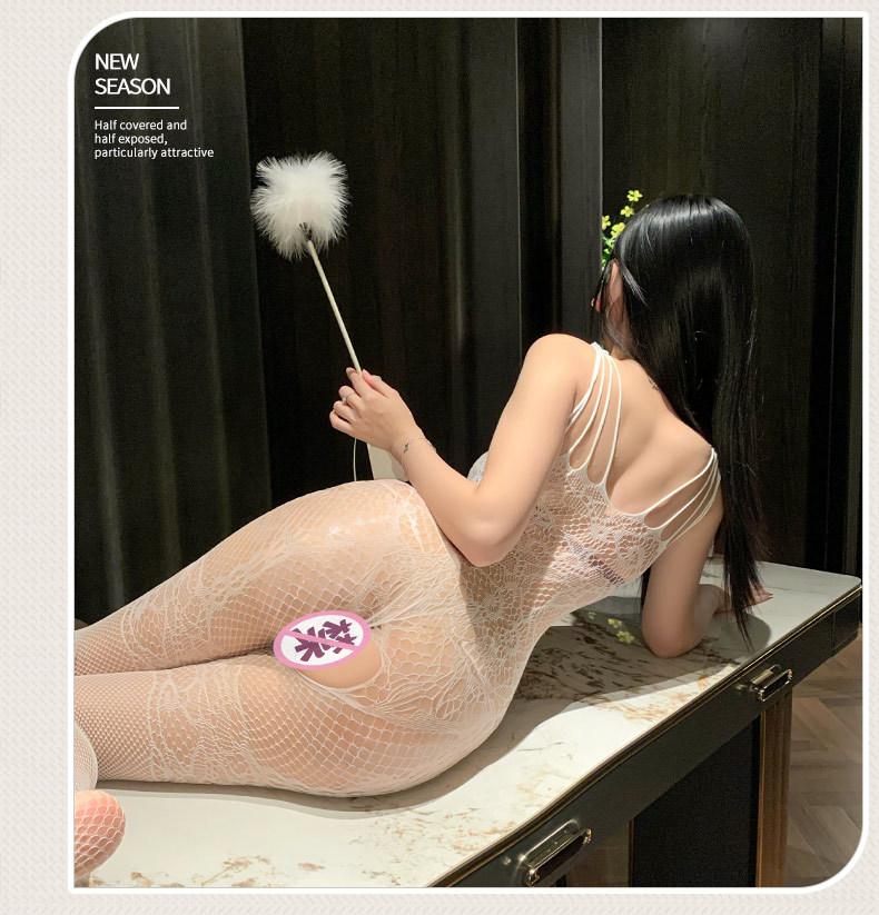 Conjunto de Lencería Sexy con Medias de Malla Transparente para Mujer, Conjunto Uniforme Hot de Una Pieza con Abertura en la Entrepierna y Calado 60