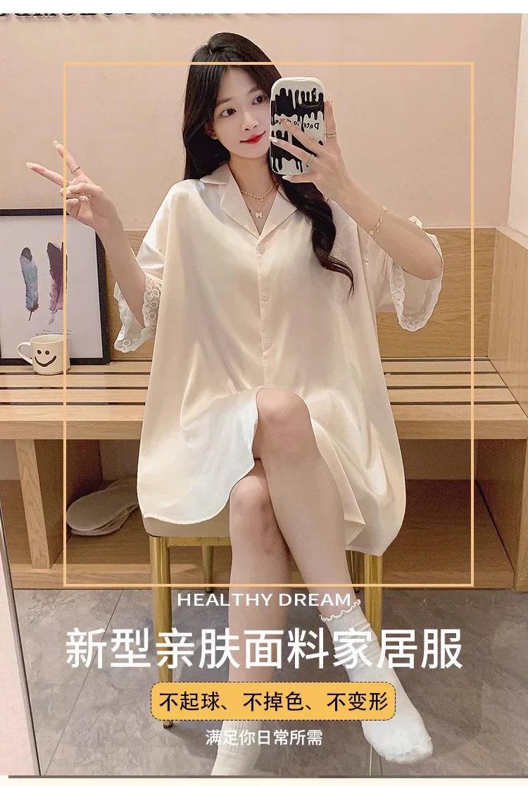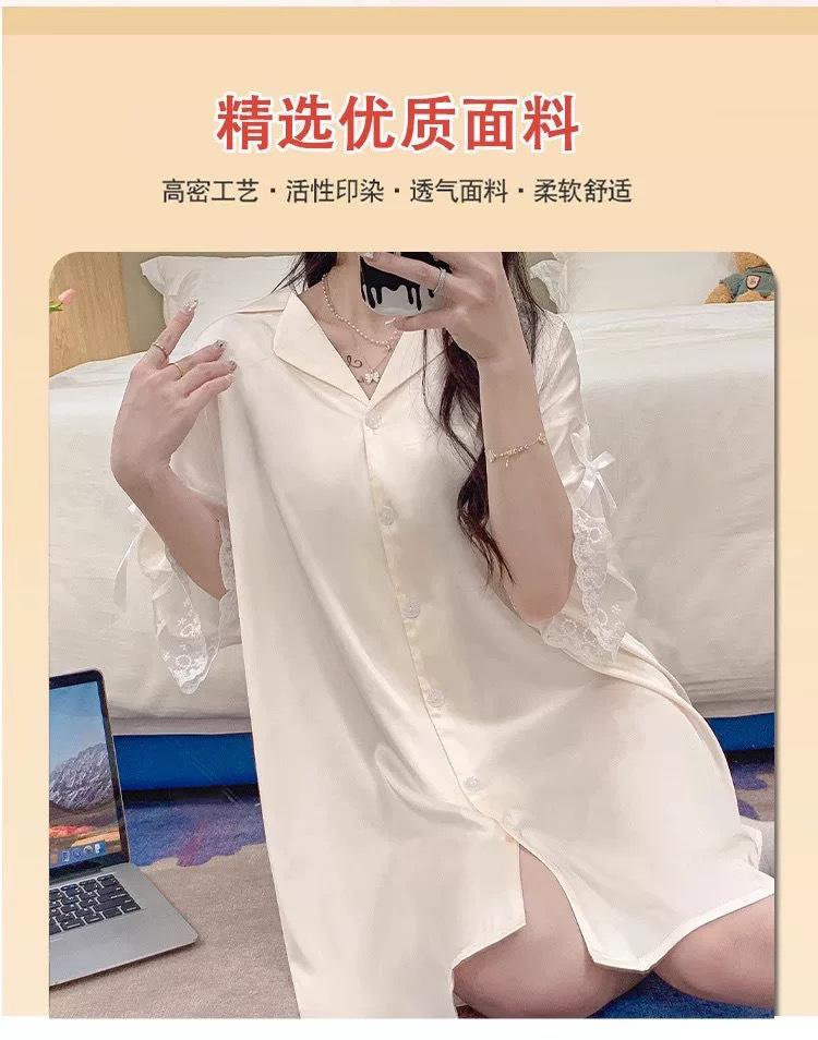 Camisón Pure Desire para Mujer Verano Seda de Hielo Fino Manga Corta Pijama para Mujer Seda Ropa de Casa Holgada Sexy de Verano para Mujeres Embarazadas