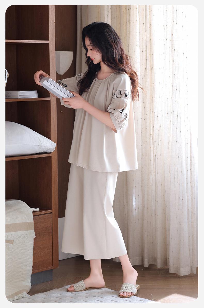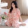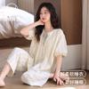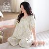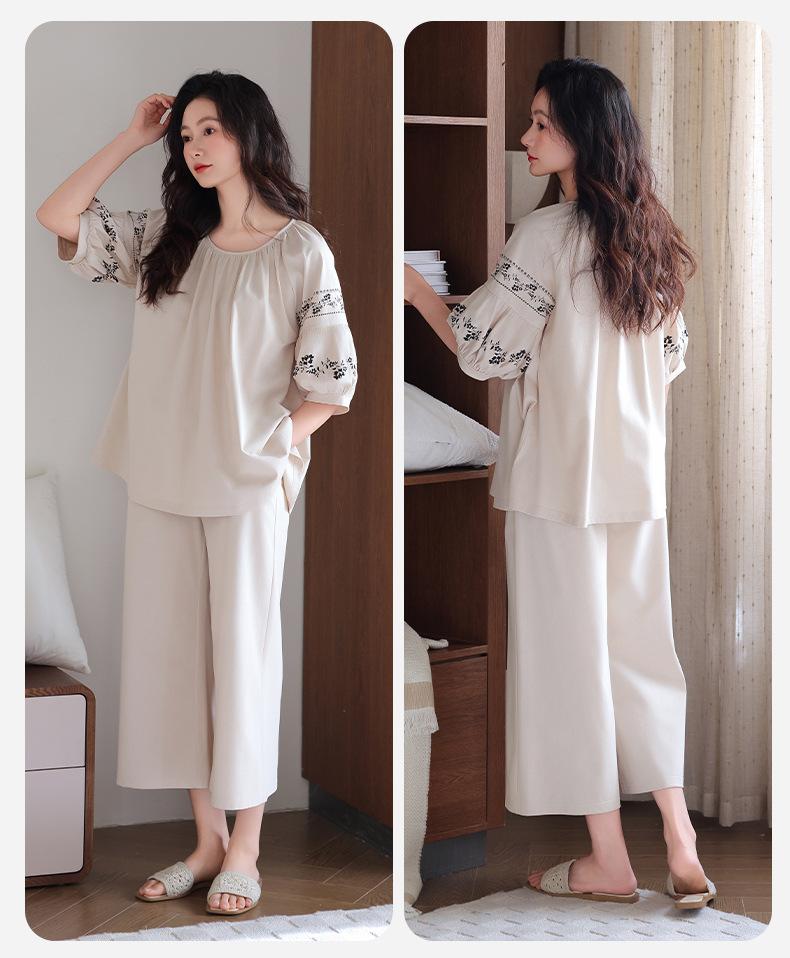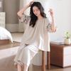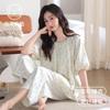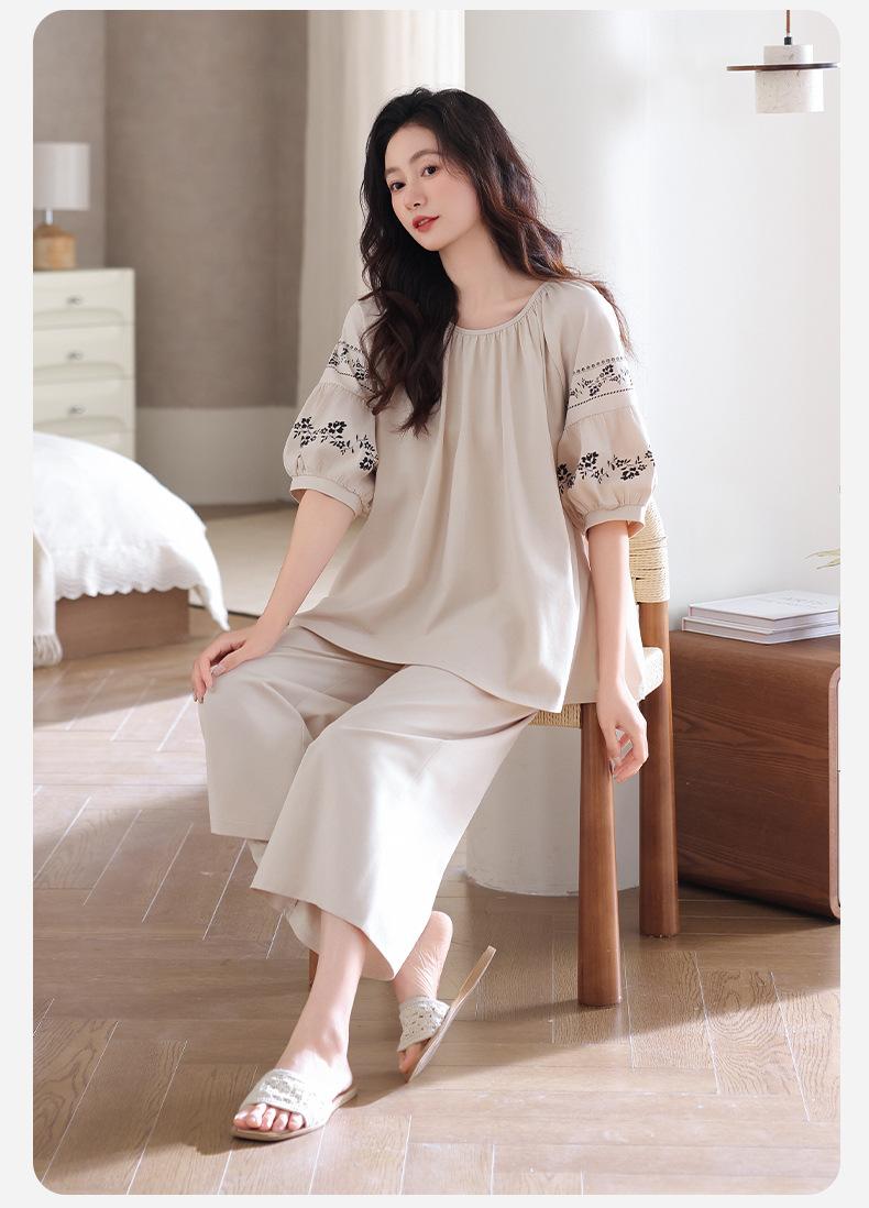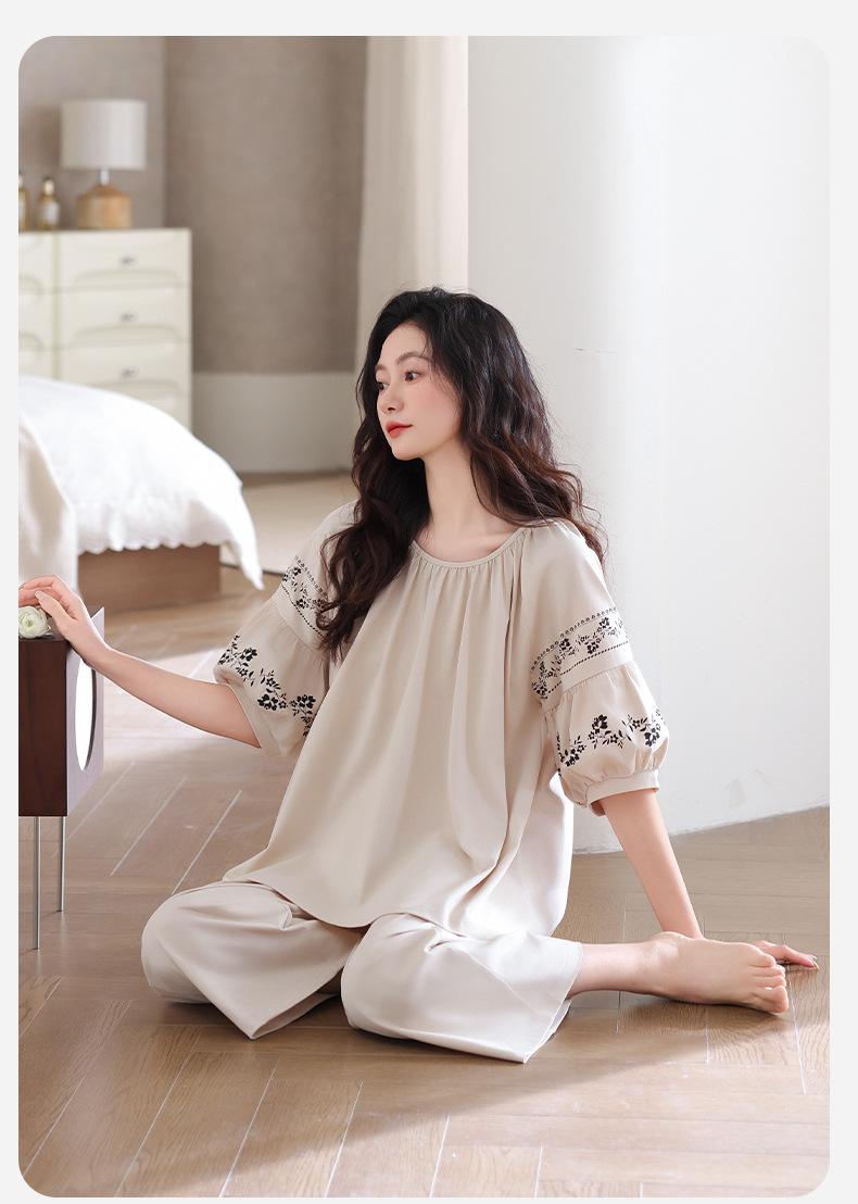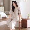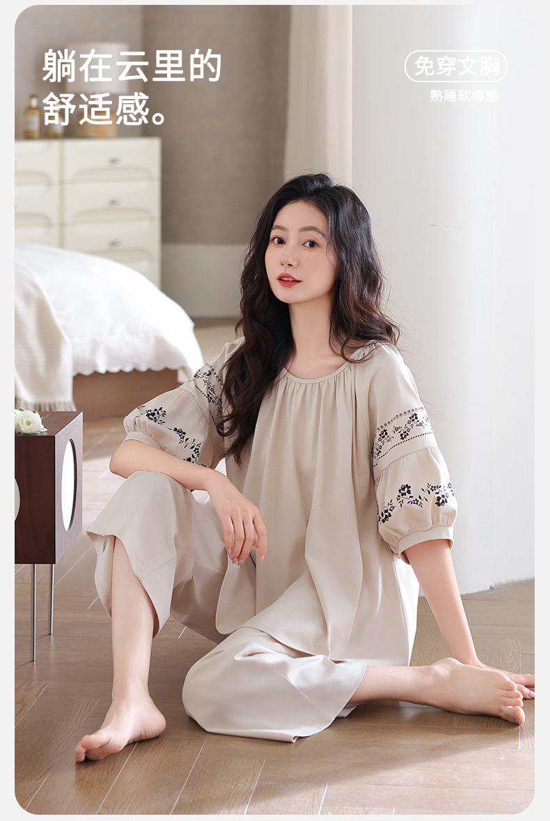 Pijama de Verano para Mujer con Almohadilla en el Pecho Algodón Manga Corta Pantalón Corto Fino Casual Suelto Manga Media Traje de Ropa para el Hogar de Mujer