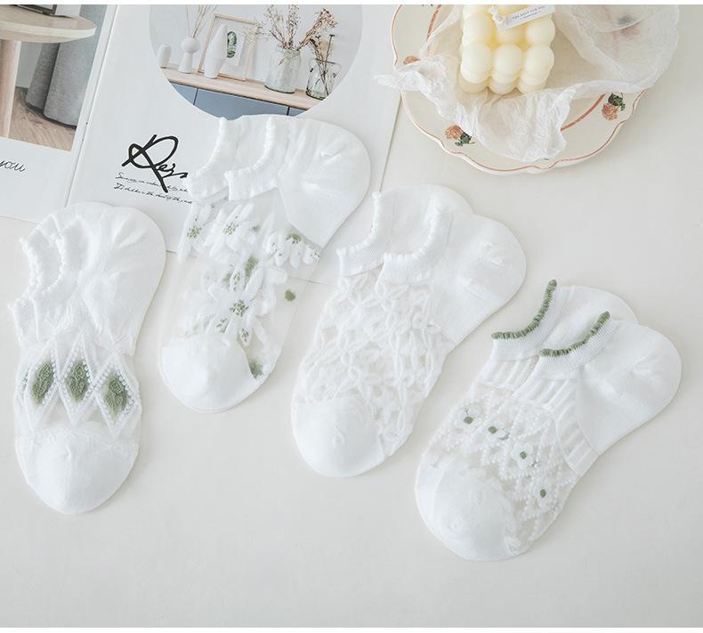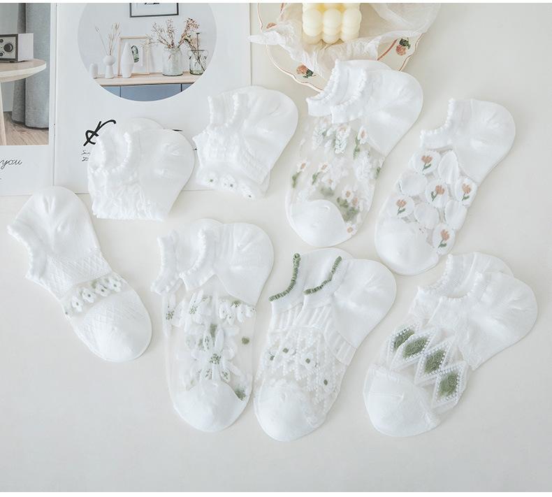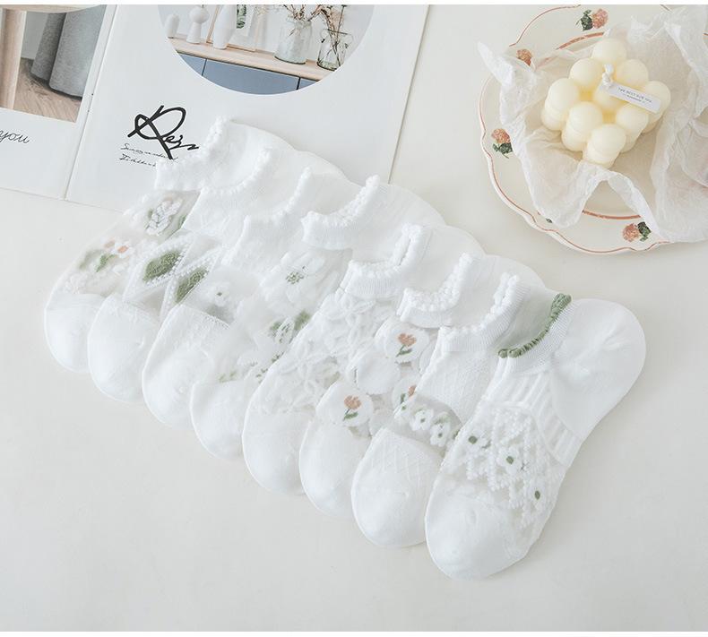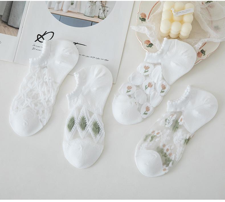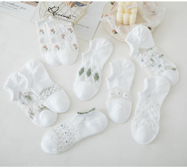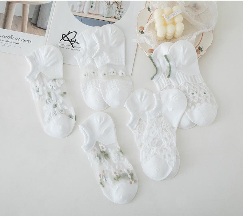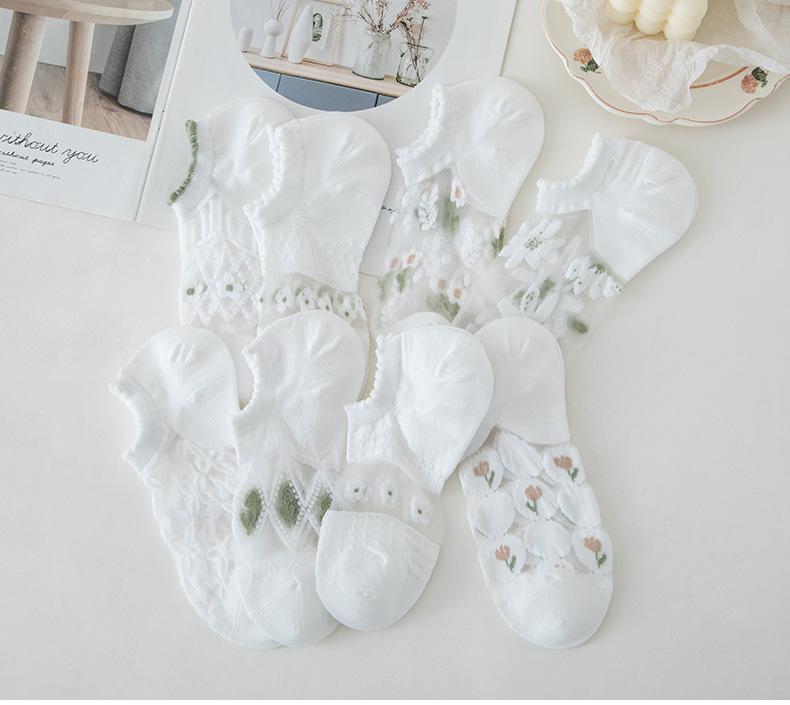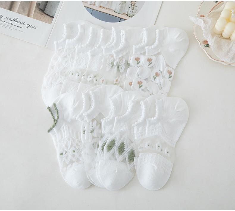 Compra Calcetines de Verano para Mujer Encaje Ultradelgado Medias de Hielo Calcetines de Barco Japoneses Lindos para Mujer Blanco Estilo Coreano Seda de Cristal Calcetines Cortos Modernos al por mayor en Joom.pro