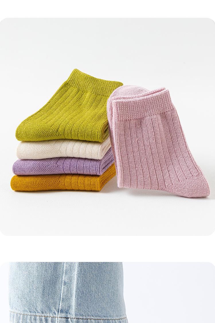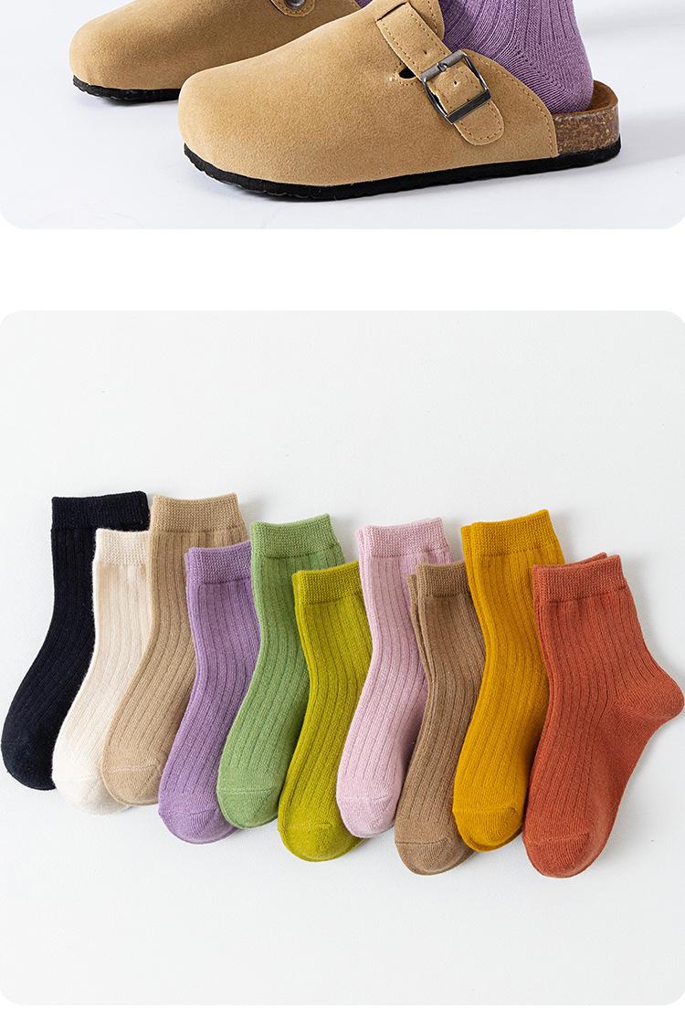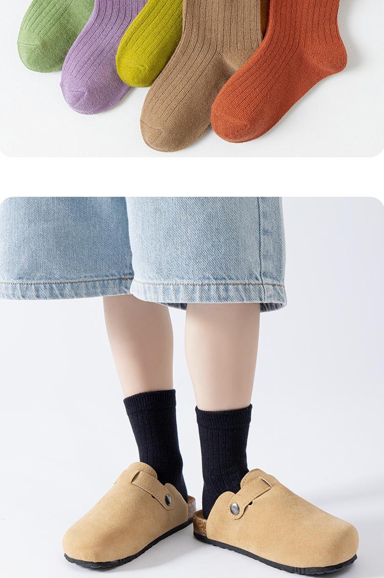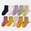 Calcetines para Niños Otoño 2024 Nuevos Color Sólido Doble Aguja Calcetines para Niños de Media Caña Color Caramelo Niños y Niñas Calcetines de Estudiante