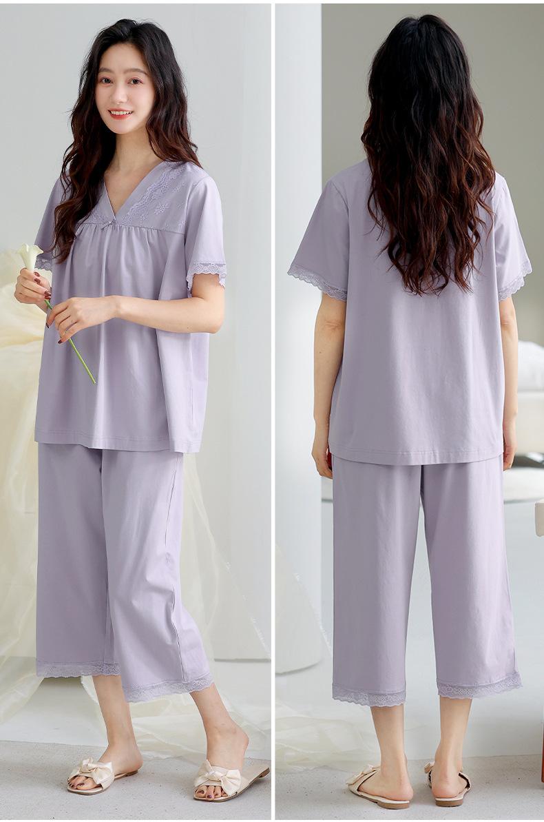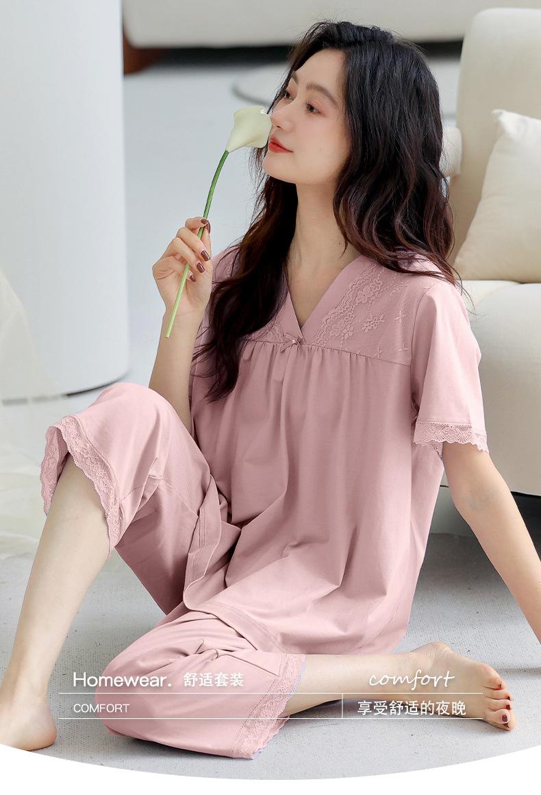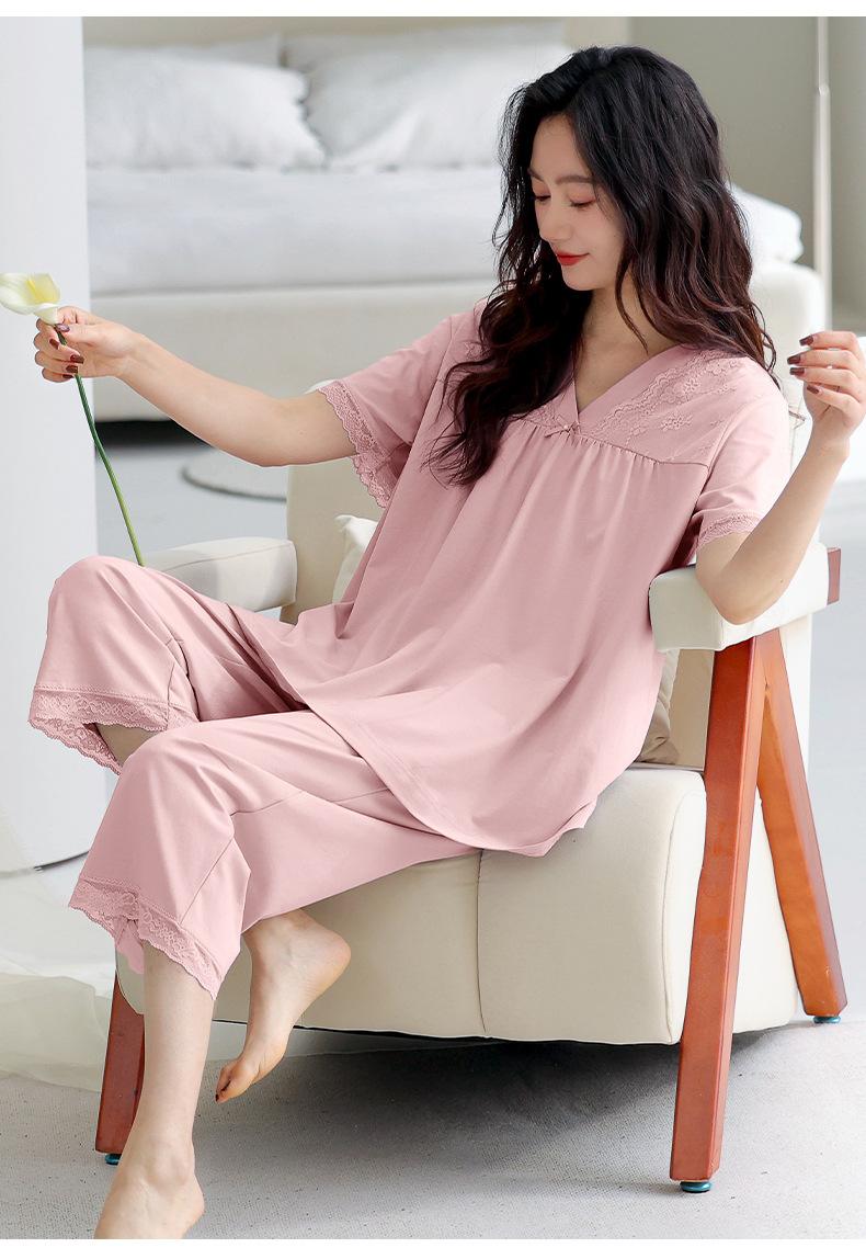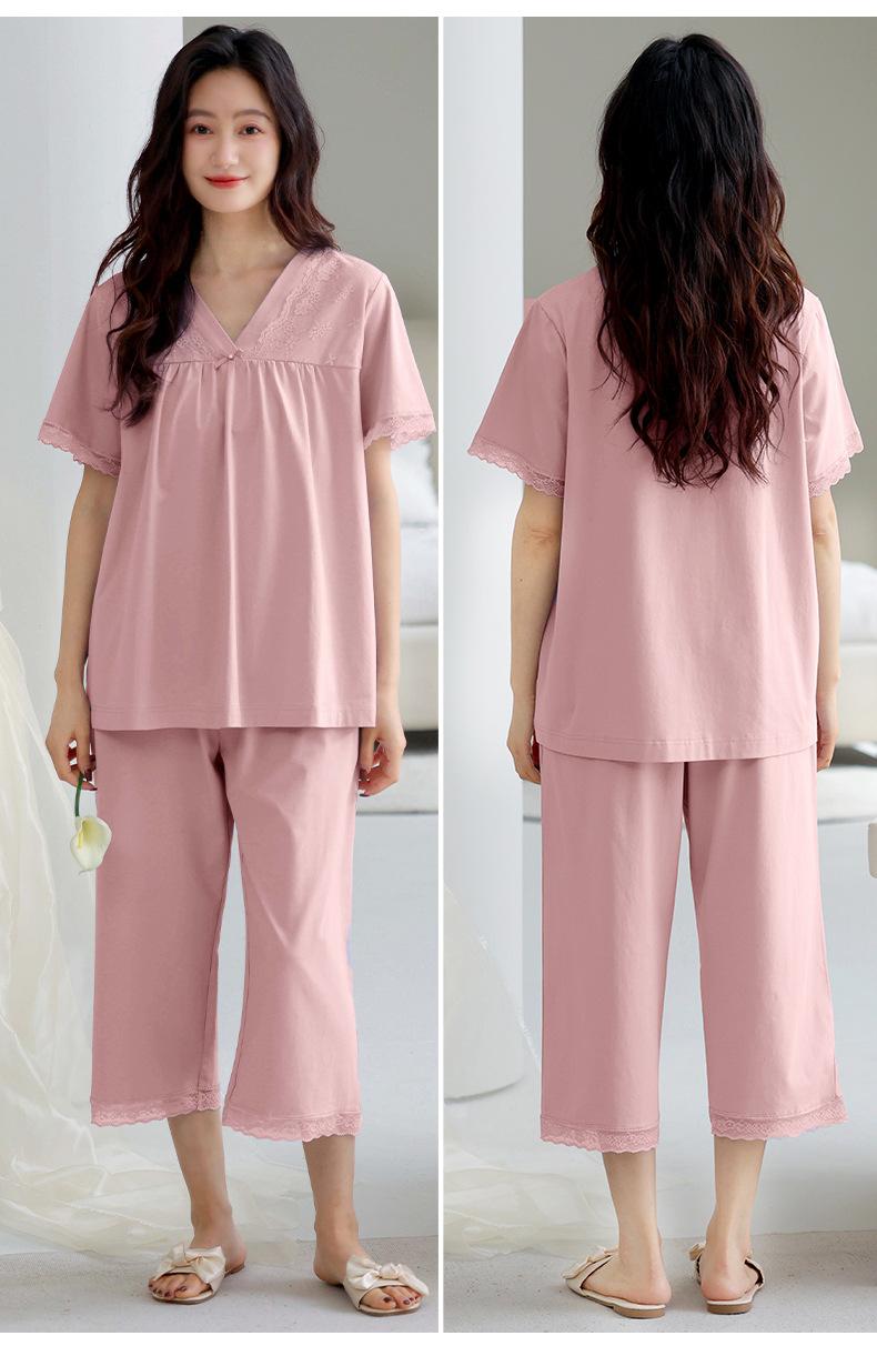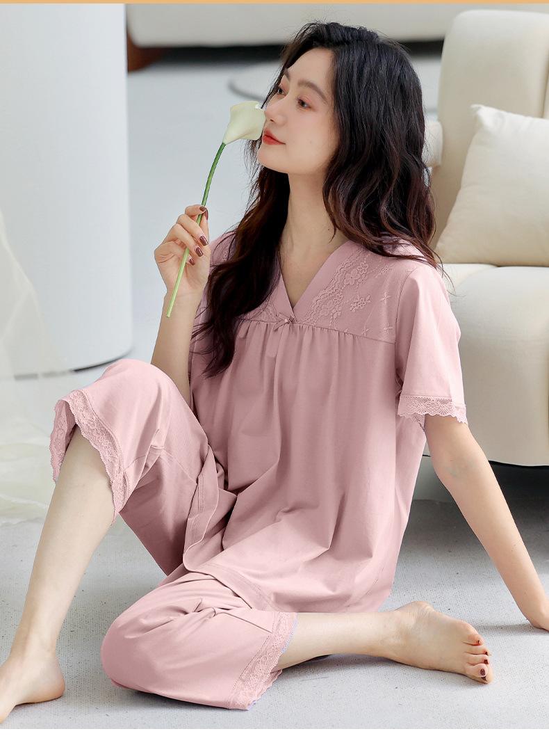 Pijama de Verano para Mujer de Algodón Puro para Mujer de Manga Corta Pantalones Cortos Traje Delgado de Verano Suelto Casual para Exterior