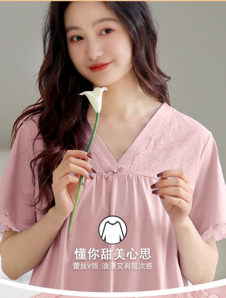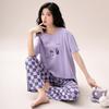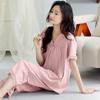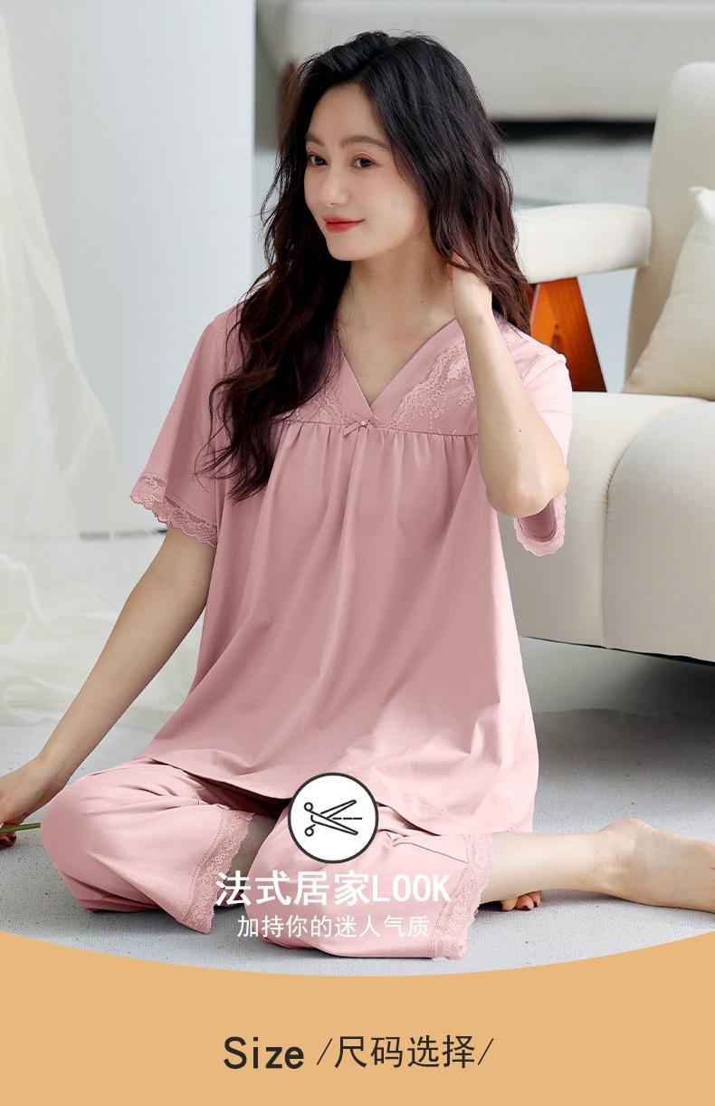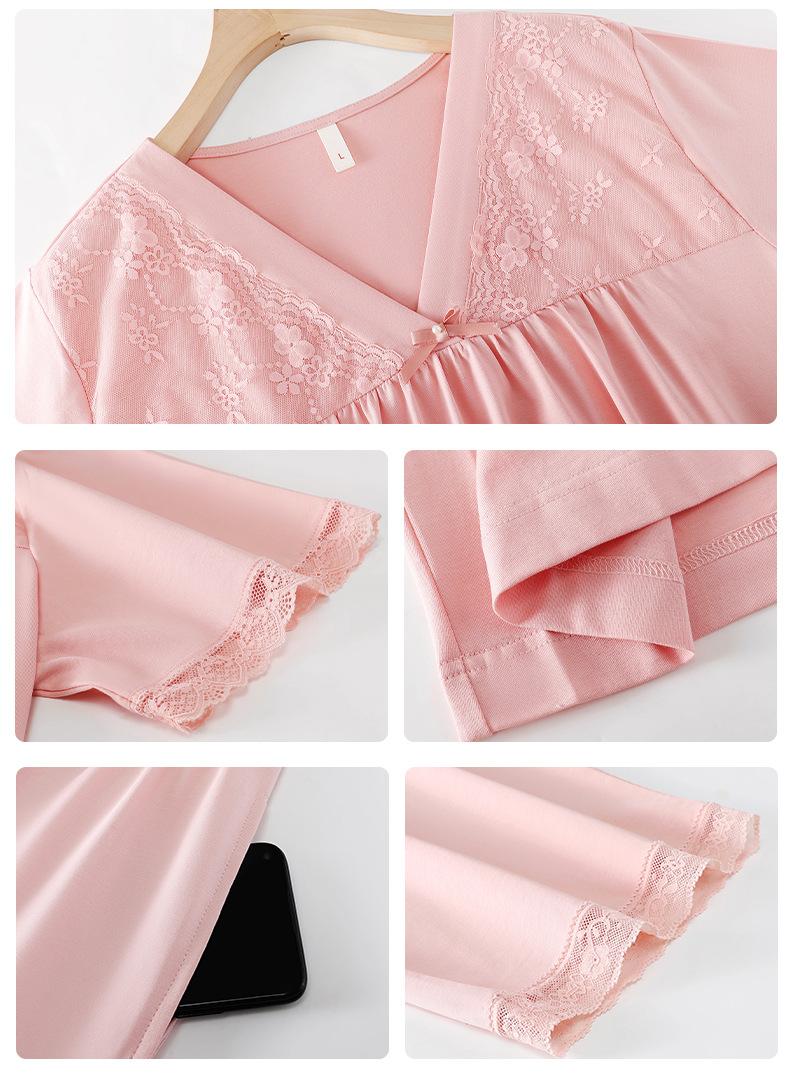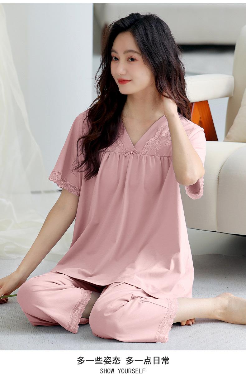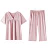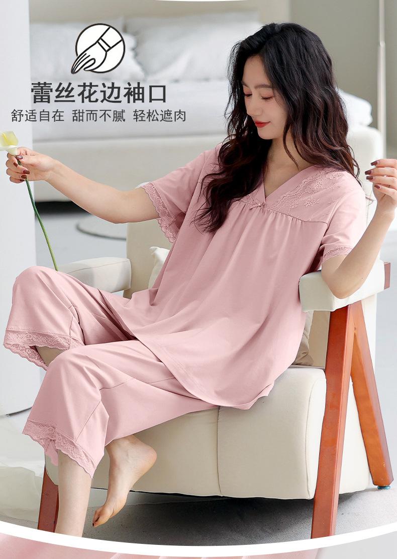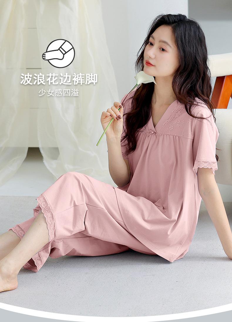 Pijama de Verano para Mujer de Algodón Puro para Mujer de Manga Corta Pantalones Cortos Traje Delgado de Verano Suelto Casual para Exterior