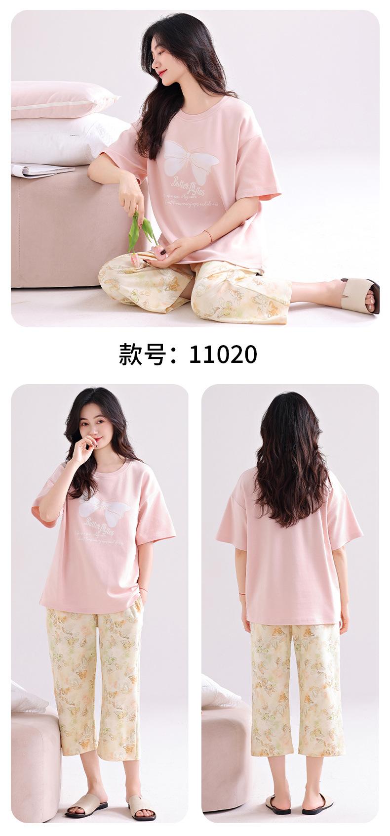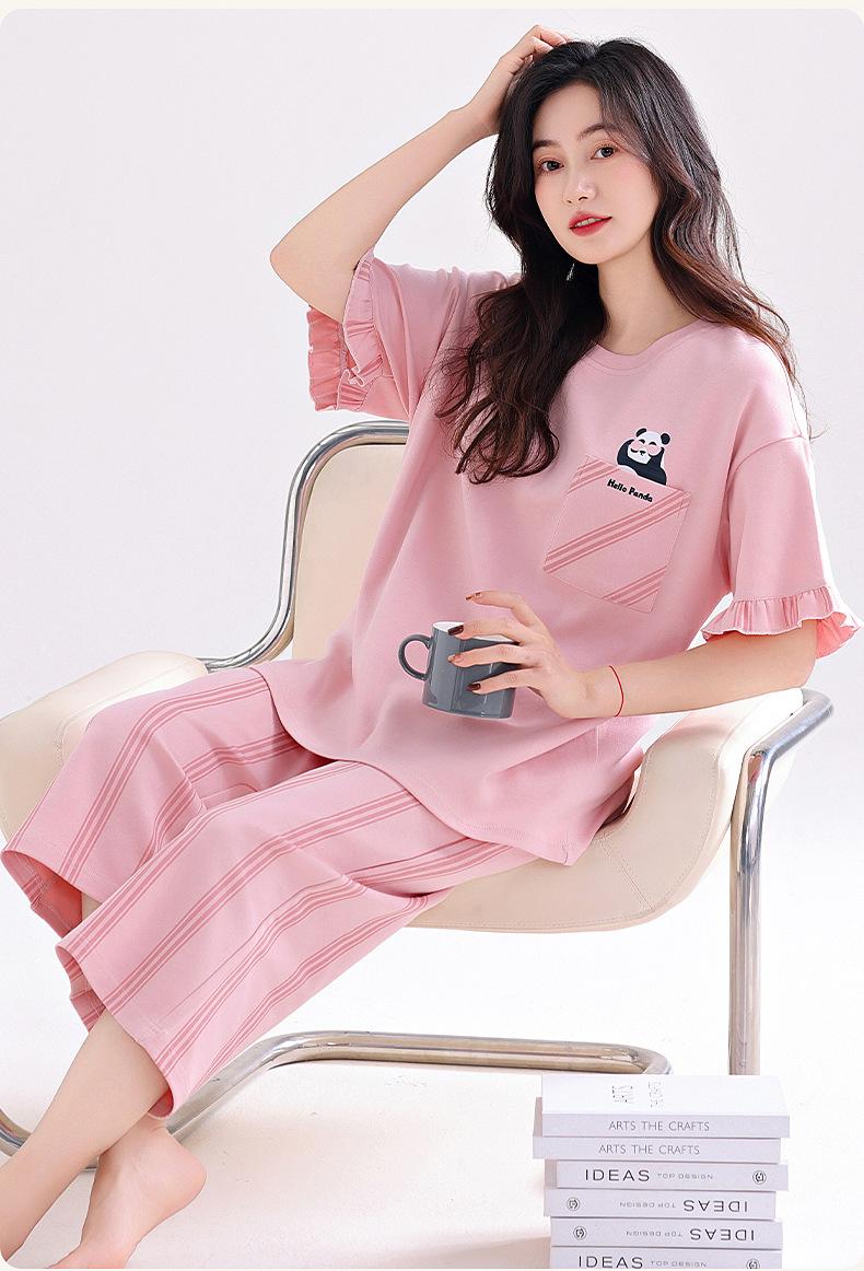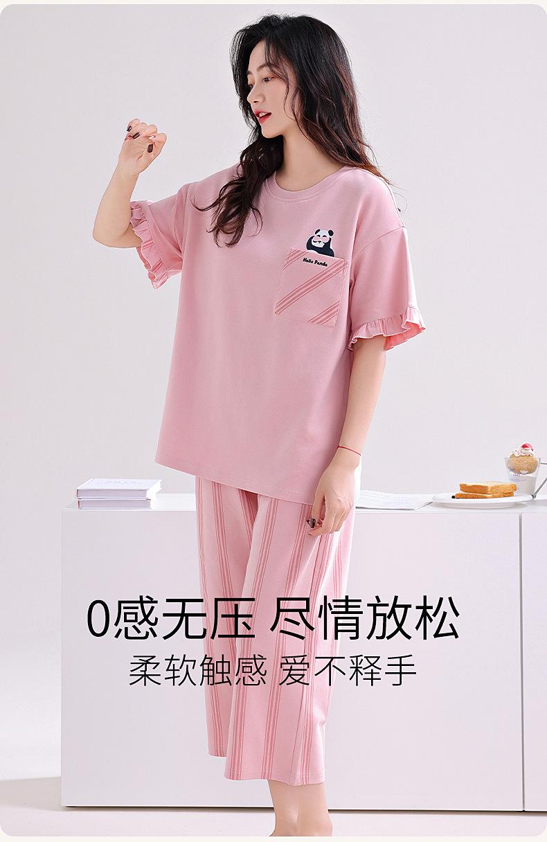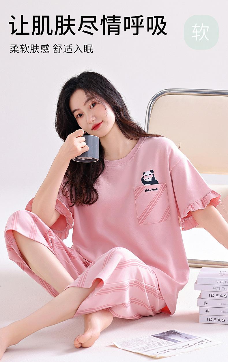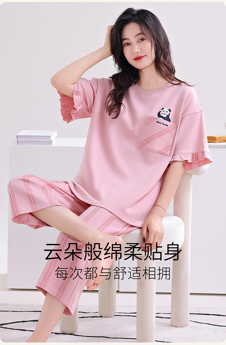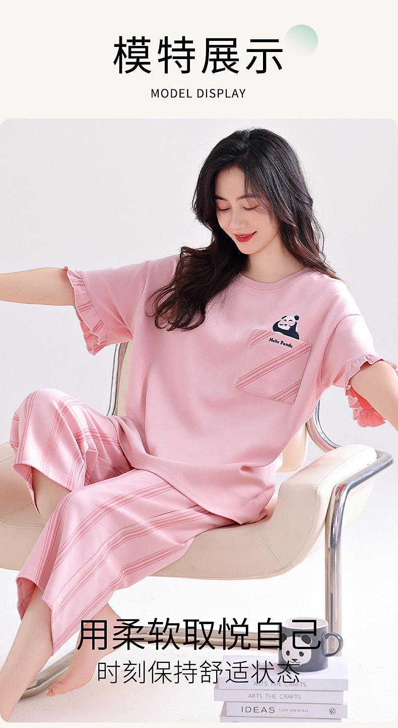 Verano Nuevo Cómodo Pijama de Algodón Puro para Mujer Verano 100% Algodón Delgado Sensación de Alta Gama Ropa para el Hogar Traje Dulce