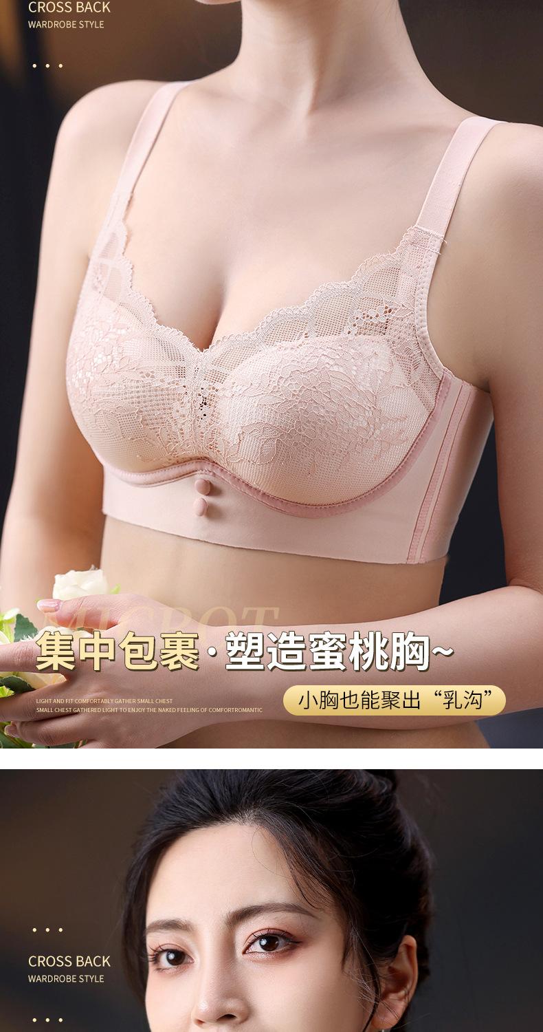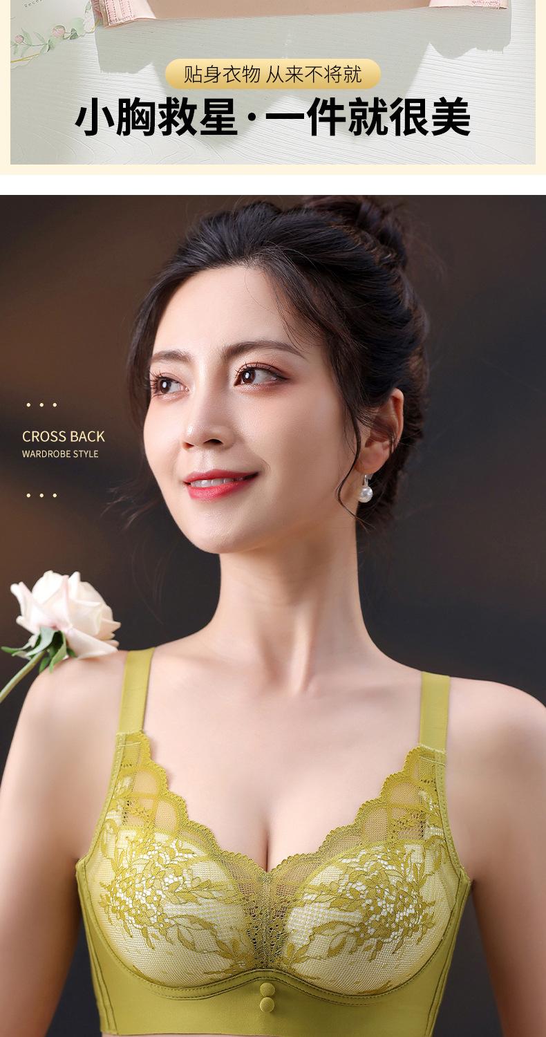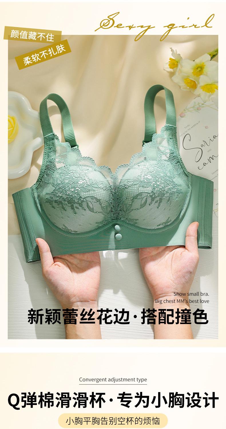 Sin aro de acero pecho pequeño copa grande sujetador encaje sexy grosor medio suave push up colección top pecho ropa interior sin costuras para mujer