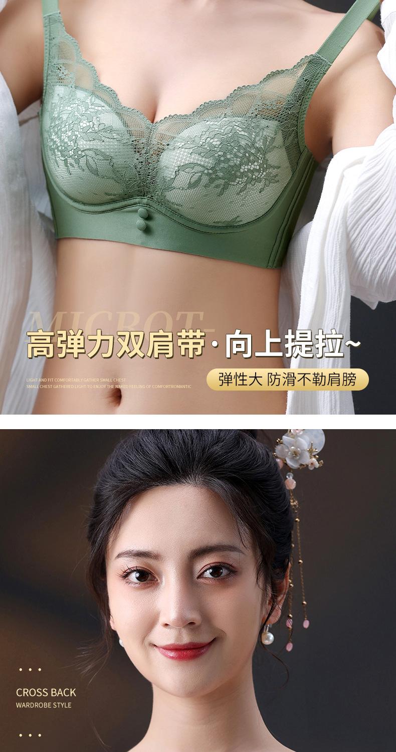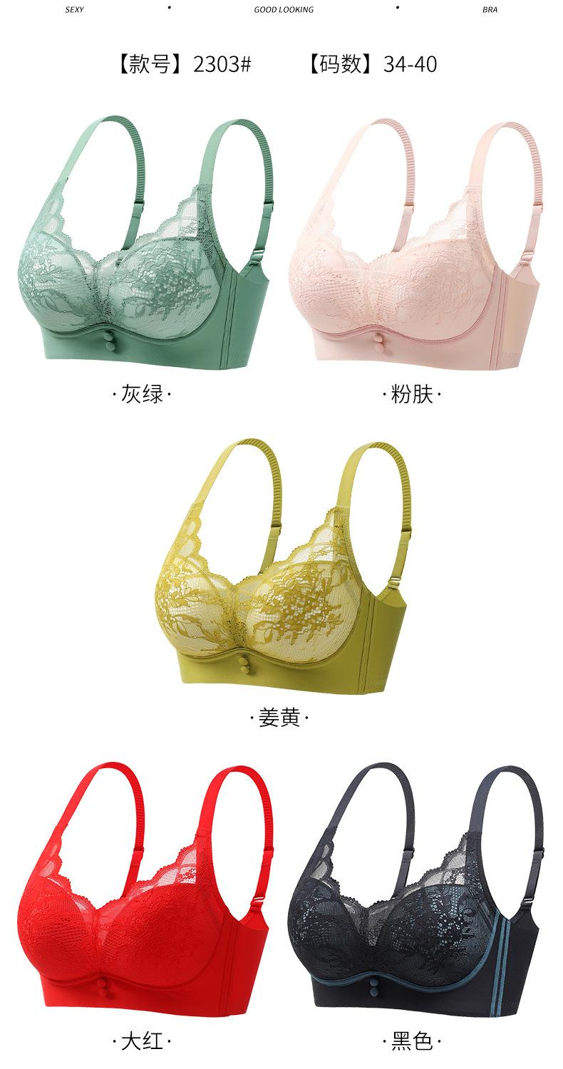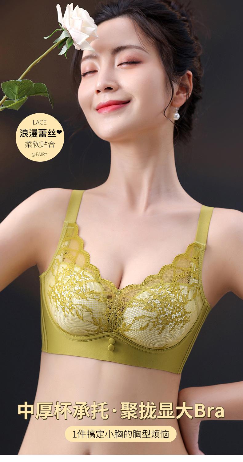Sin aro de acero pecho pequeño copa grande sujetador encaje sexy grosor medio suave push up colección top pecho ropa interior sin costuras para mujer
