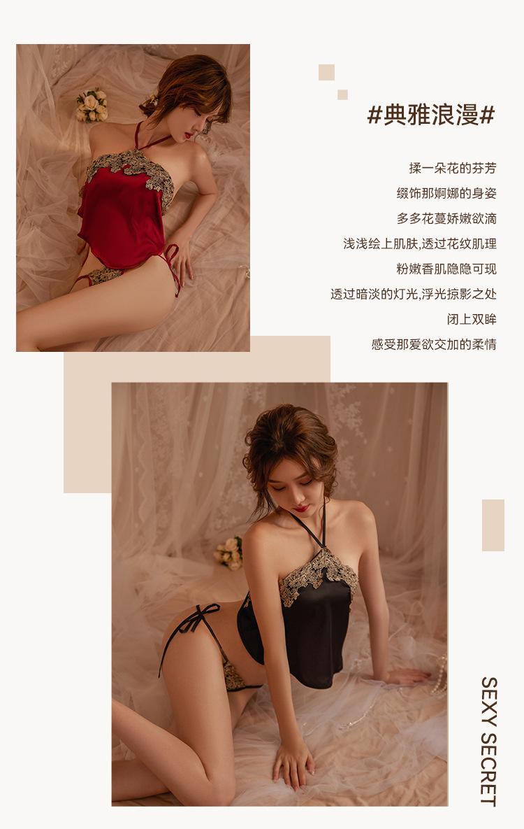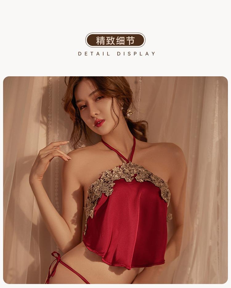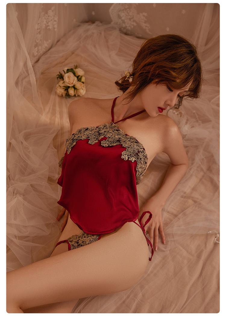 Solitario Sexy Vientre Lencería Sexy para Mujer Caliente Sin Quitar Hueco Pasión Tentación Traje Pijama Uniforme de Cama