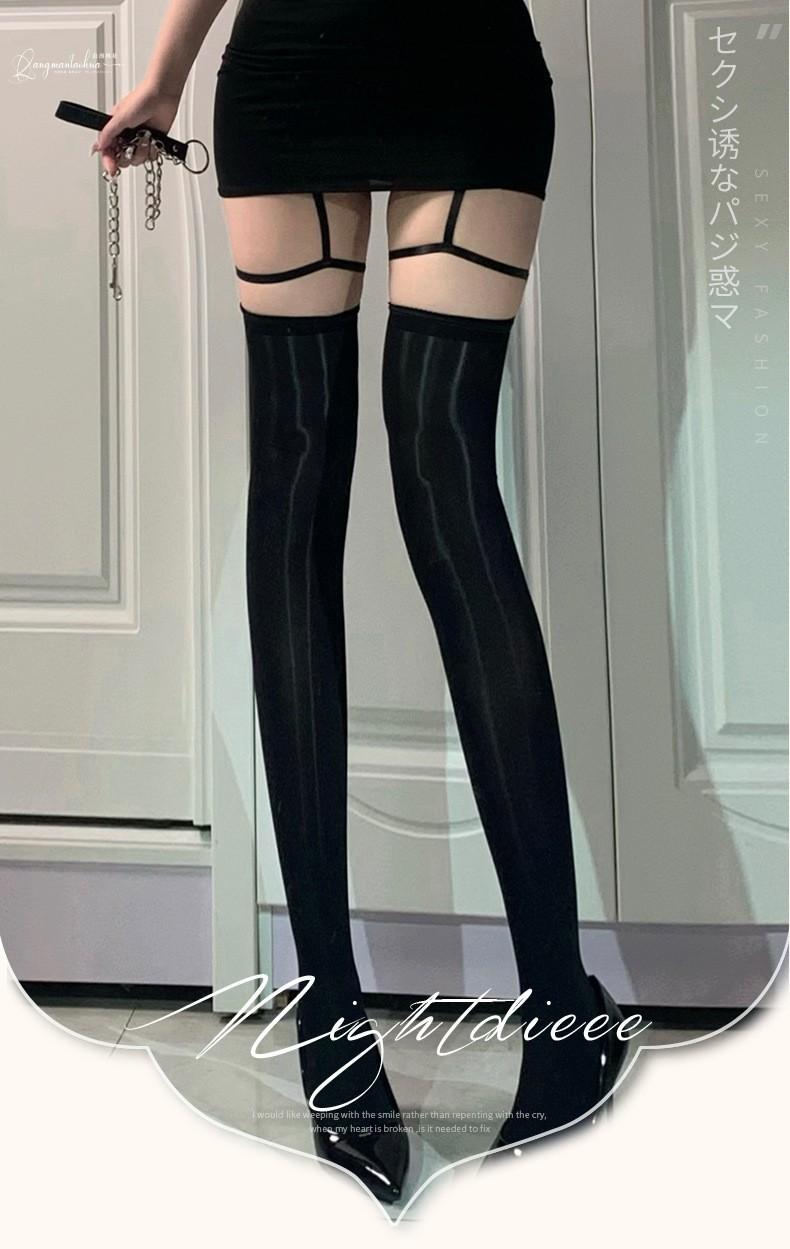 Medias sexys para mujer, medias sexys con tirantes, calcetines de una pieza, calcetines por encima de la rodilla, seda negra aceitosa europea y americana, medias ultrafinas A71