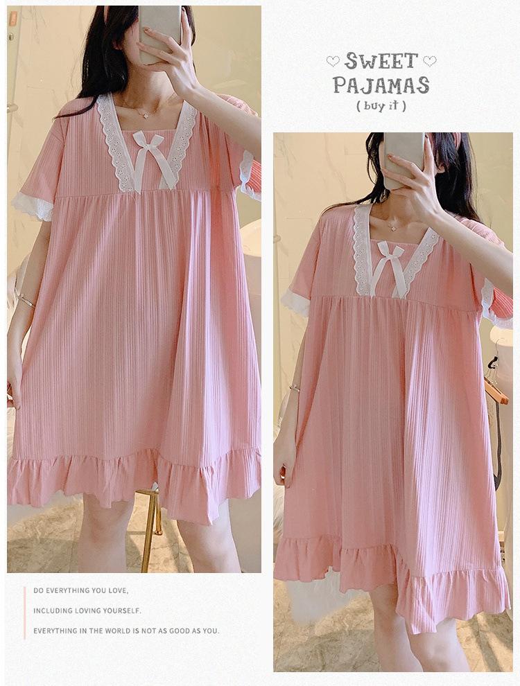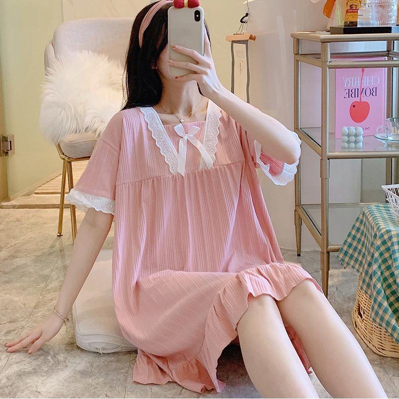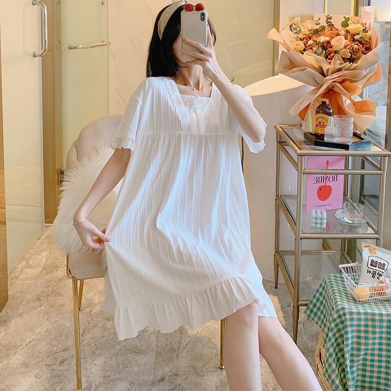 Viene con Almohadillas para el Pecho, Camisón de Manga Corta para Mujer, Verano Sexy Estilo Princesa Holgado Talla Grande 2025 Pijama Nuevo de Verano