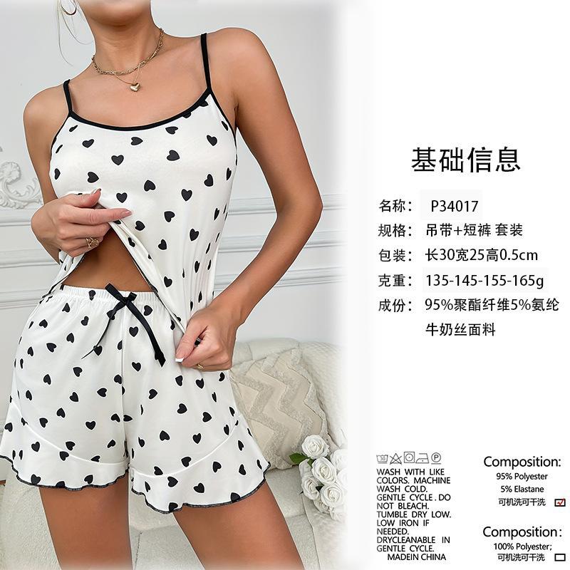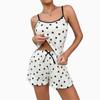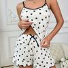 Conjunto de Shorts de Tirantes Casuales de Verano con Corazón y Lunares para Mujer Ropa para el Hogar Pijama Cómodo Estilo Perezoso Producto Nuevo de Verano