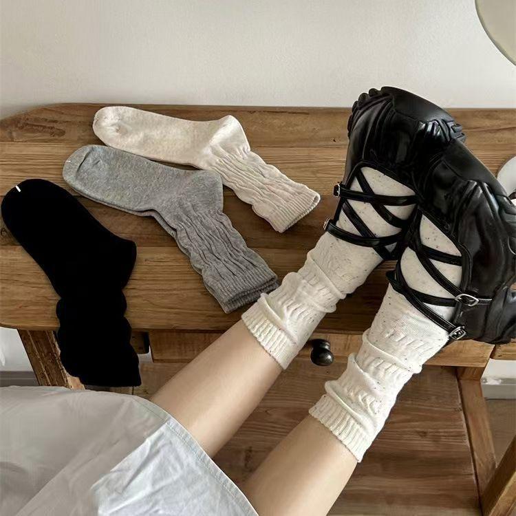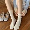 Calcetines de Color Sólido Blancos Calcetines Medios para Mujer Calcetines Medios para Mujer Primavera y Verano Calcetines de Verano Trenzados Ins Estilo Japonés Calcetines Apilados para Mujer