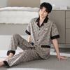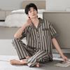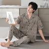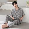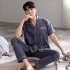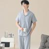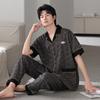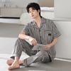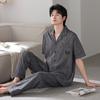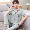 Conjunto de Pijama de Algodón de Verano para Hombre con Mangas Cortas y Pantalón Largo, Nuevo Conjunto Casual para Estar en Casa 2025
