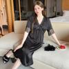 [Seda de Hielo] Pijama de Seda de Hielo para Mujer Verano Manga Corta Encaje Sexy Camisón Deseo Puro Francés Talla Grande Ropa para el Hogar