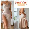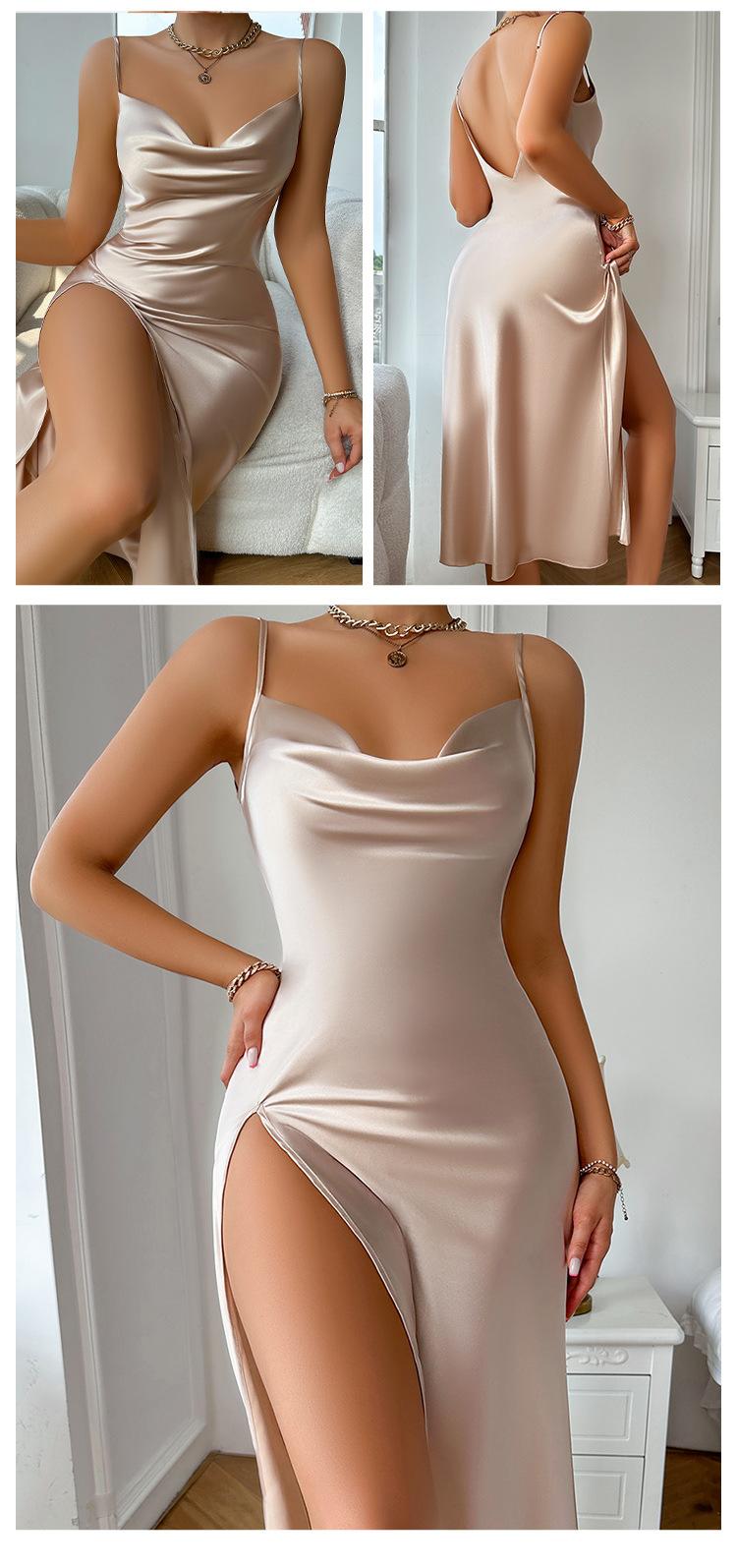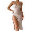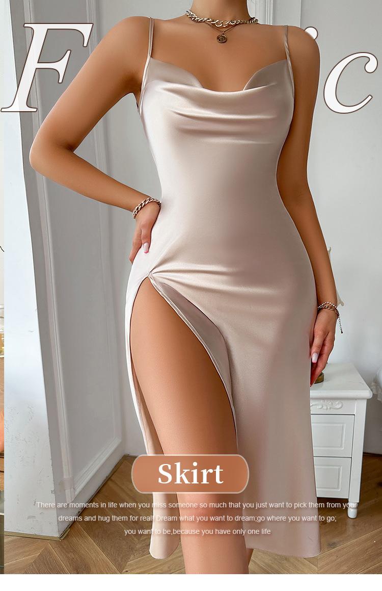 Pijama Sexy de Tirantes para Mujer, Camisón de Verano Delgado de Seda con Tirantes, Largo Medio Color Puro Sexy para Estar en Casa