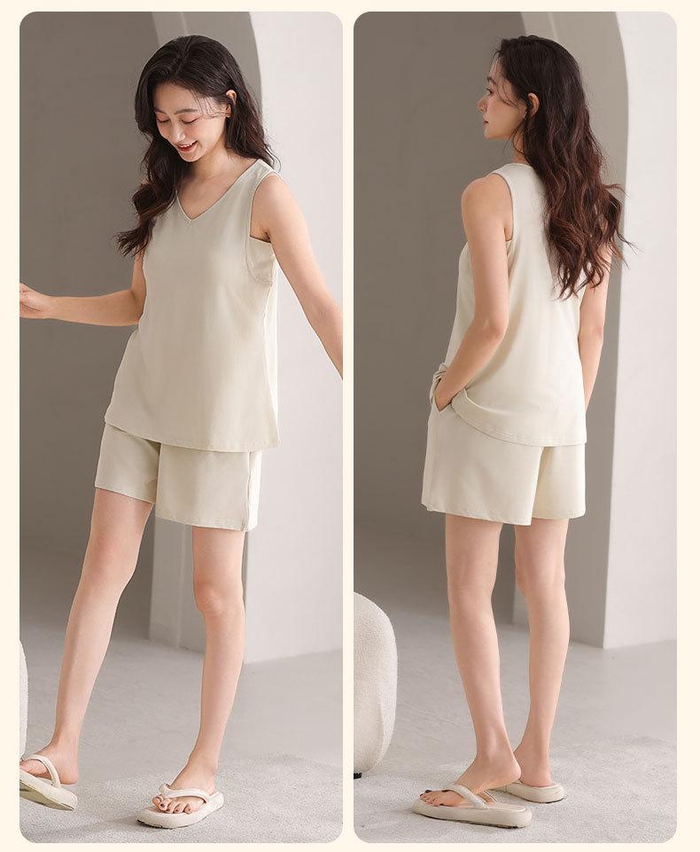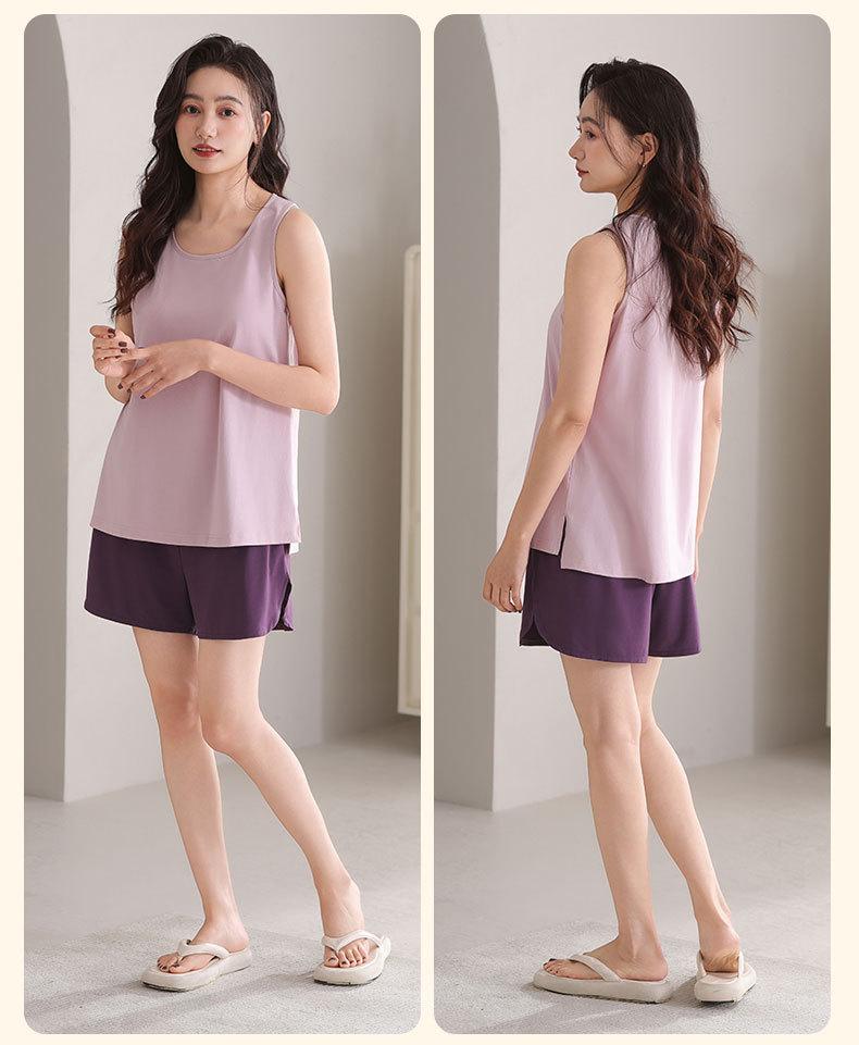 Pijamas para Mujer Verano Modal Sin Mangas Chaleco Shorts Delgadas Verano Casual Simple Estilo Verano Se Puede Usar Fuera Ropa de Casa
