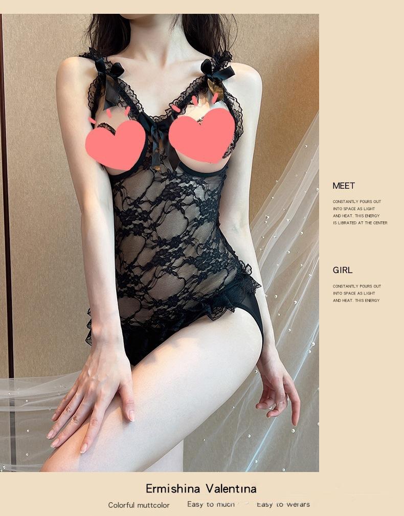 Lencería Sexy Encaje Tentación para Mujer Sin Quitar Pijama Sexy Entrepierna Abierta Pecho Expuesto Mono Uniforme Caliente 4025