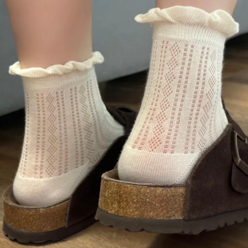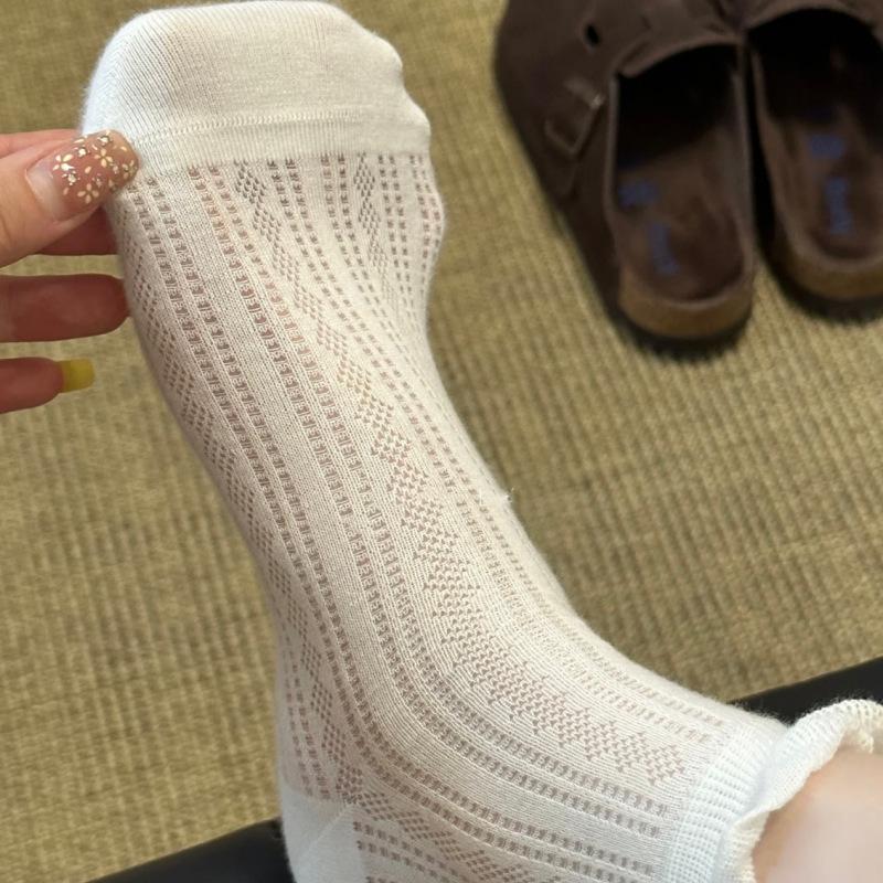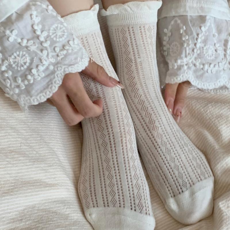 Calcetines de mujer primavera y verano verticales delgados de malla hueca calcetines de tubo encaje boca burbuja estilo coreano calcetines dulces lindos calcetines de algodón