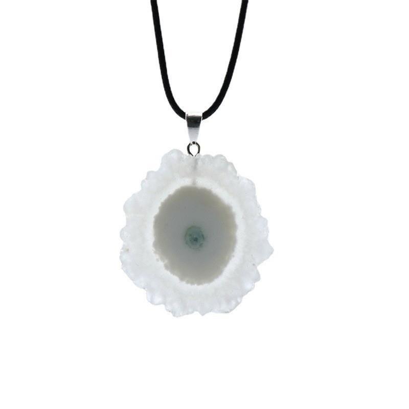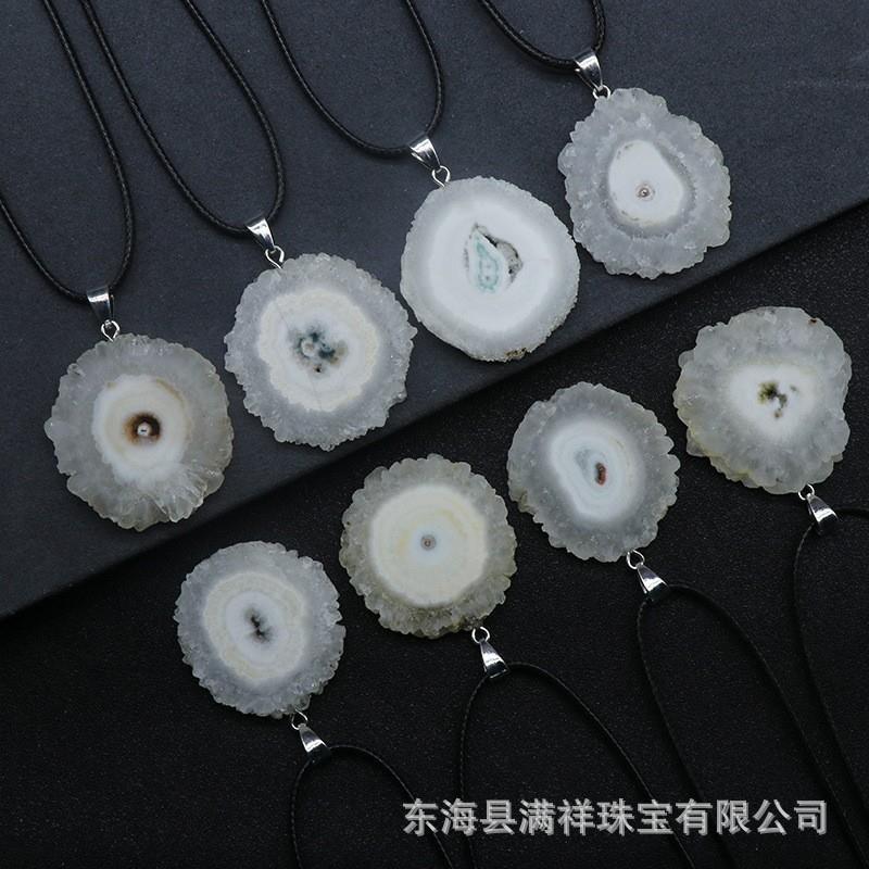 Colgante de diente de ágata de cristal natural facetado, collar de rebanada de racimo de cristal de piedra en bruto blanca