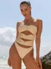 Traje de Baño Bikini Entero Sexy Plisado Monohombro Ajustado sin Espalda Nuevo Transfronterizo Europeo y Americano 2025 Traje de Baño de Mujer