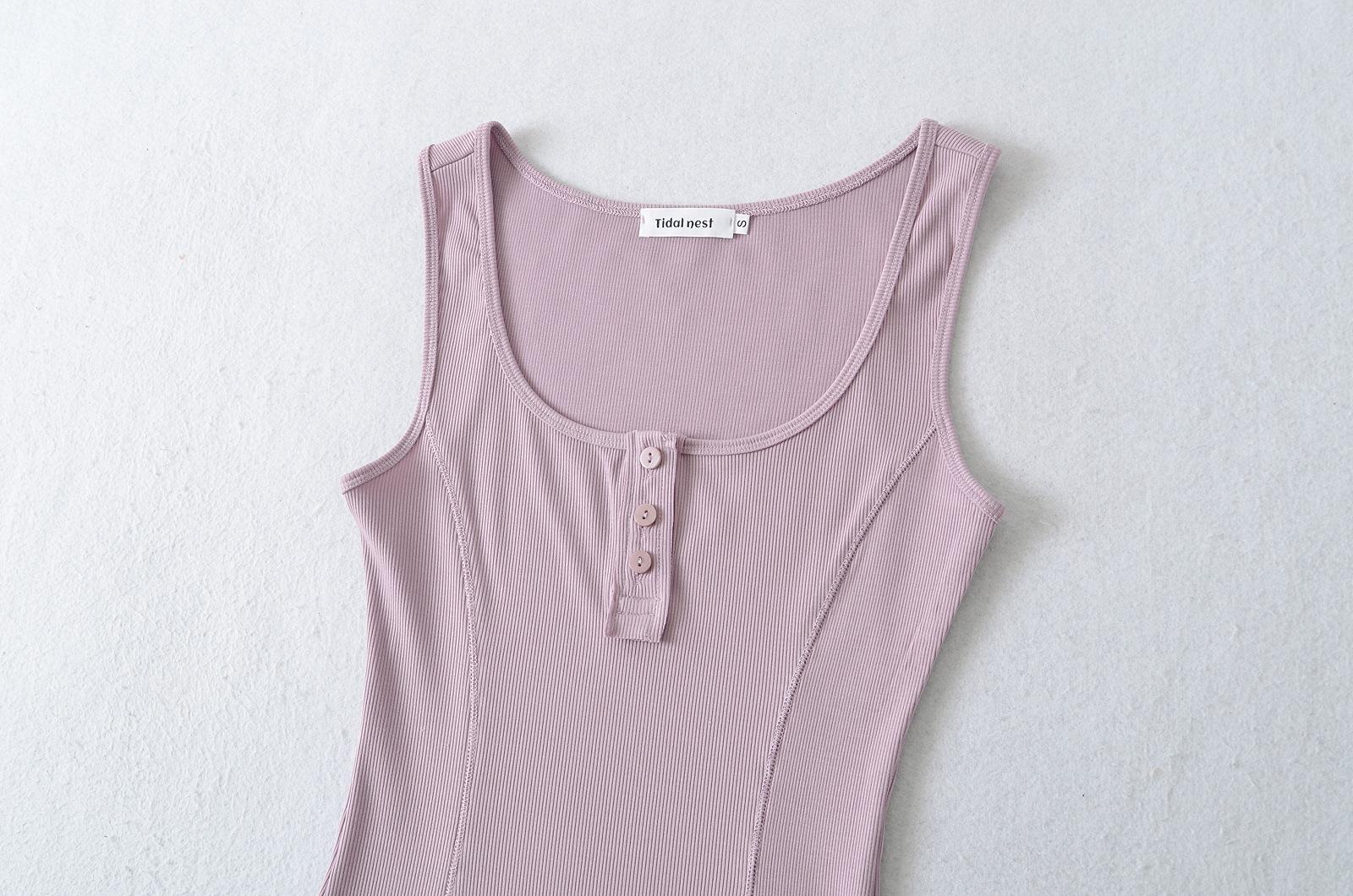 2025 Nuevo Verano Chica Caliente Sexy Camisola Cuello Cuadrado Tres Botones Cintura Ajustada Adelgazante Top Interior