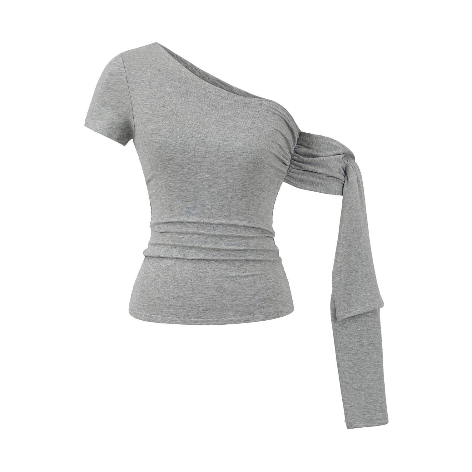 Compra 2025 Deseo Puro Verano Chica Caliente Camiseta de Hombro Inclinado con Cinta para Mujer Top Asimétrico de un Hombro Delgado con Pliegues al por mayor en Joom.pro