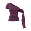 2025 Deseo Puro Verano Chica Caliente Camiseta de Hombro Inclinado con Cinta para Mujer Top Asimétrico de un Hombro Delgado con Pliegues