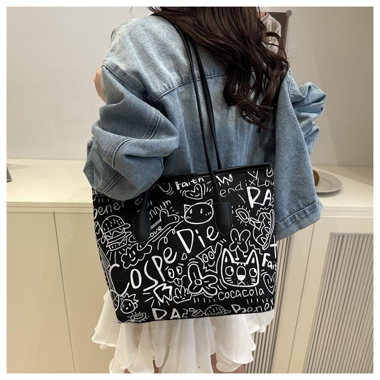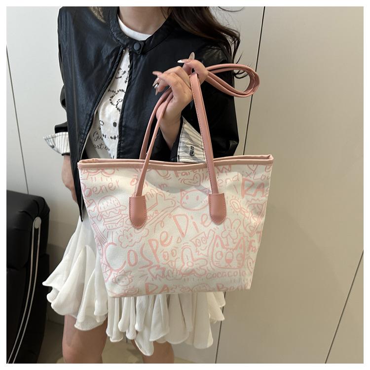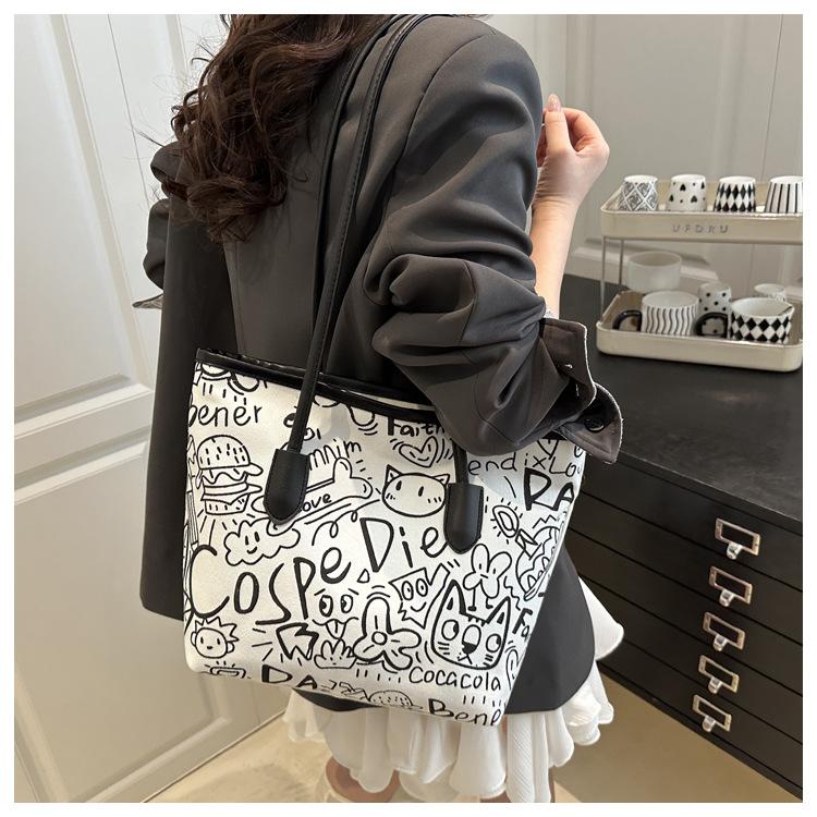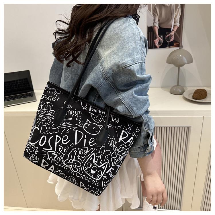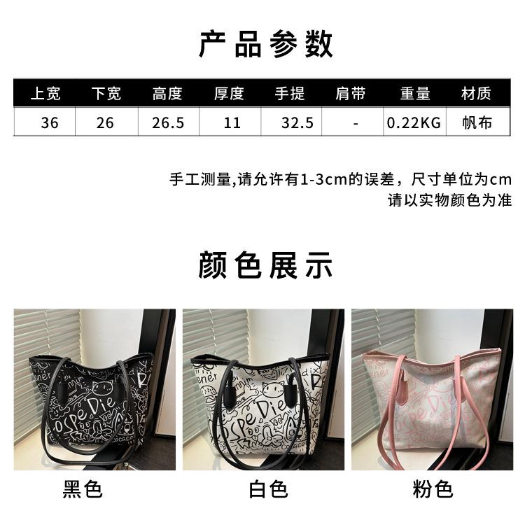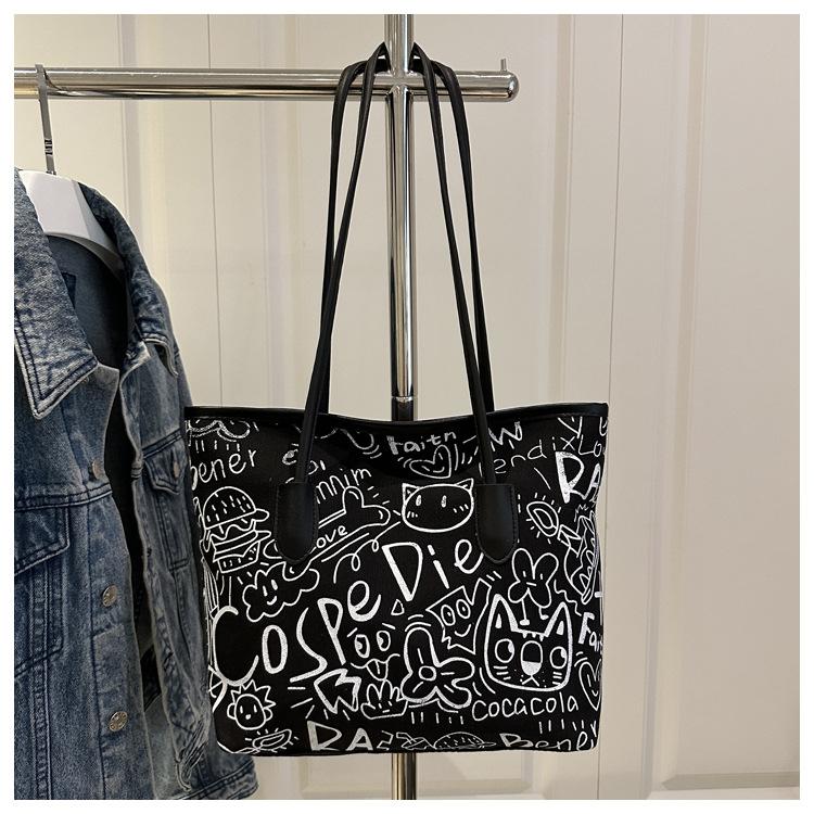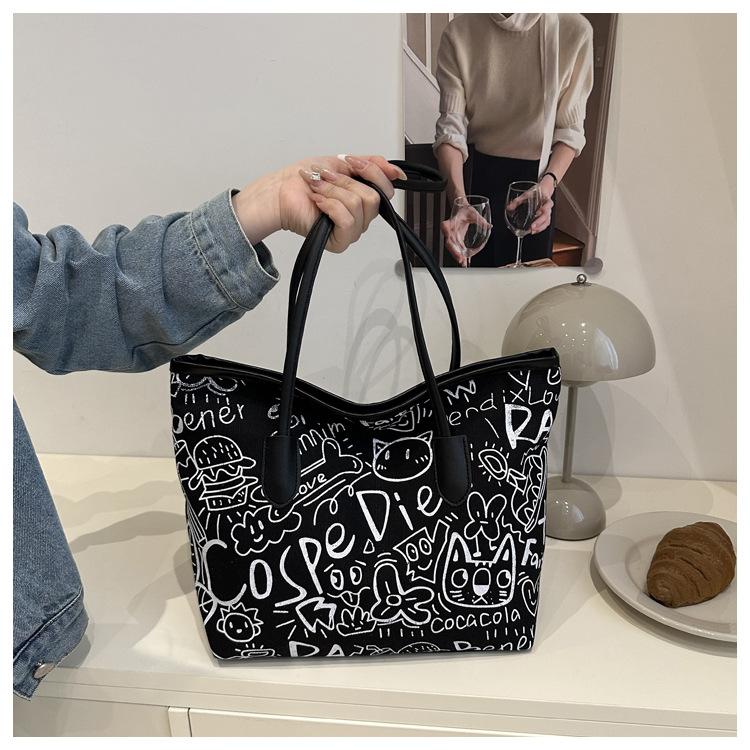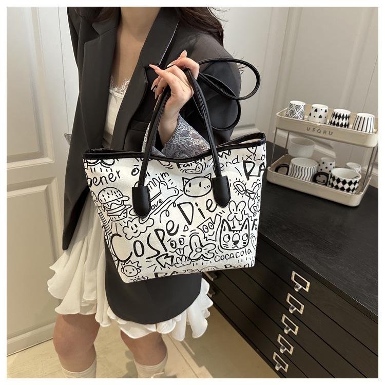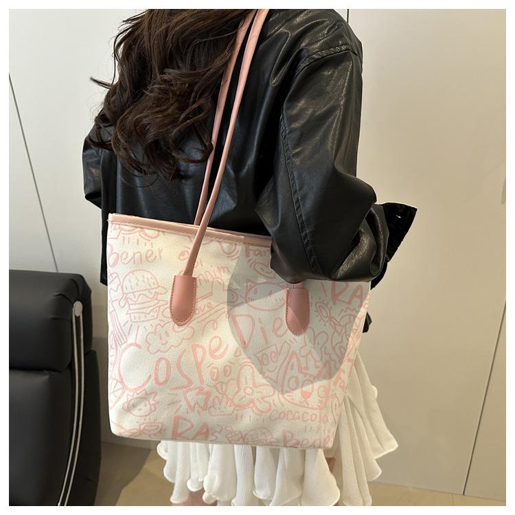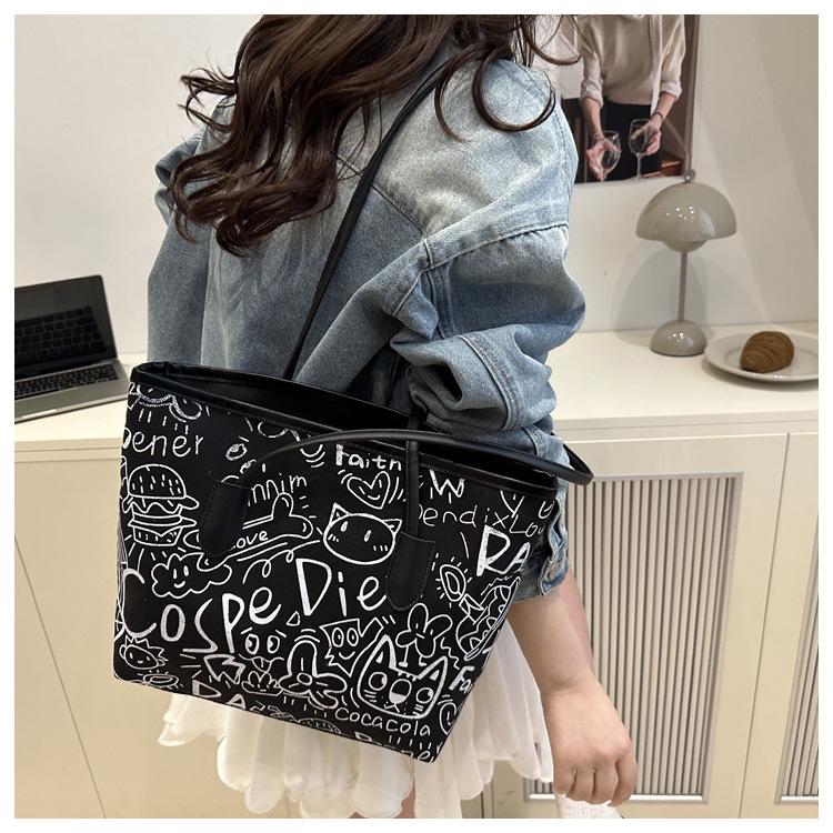 Bolso Verano Mujer 20245 Letras Graffiti Bolso de Hombro Viajero para el Trabajo Bolso de Mano Bolso Tote de Gran Capacidad Estampado