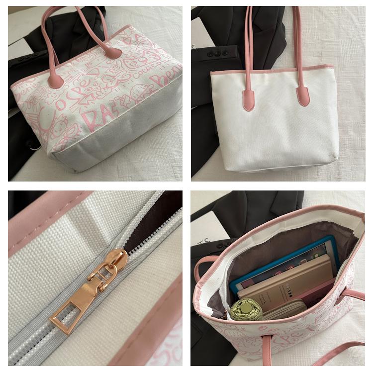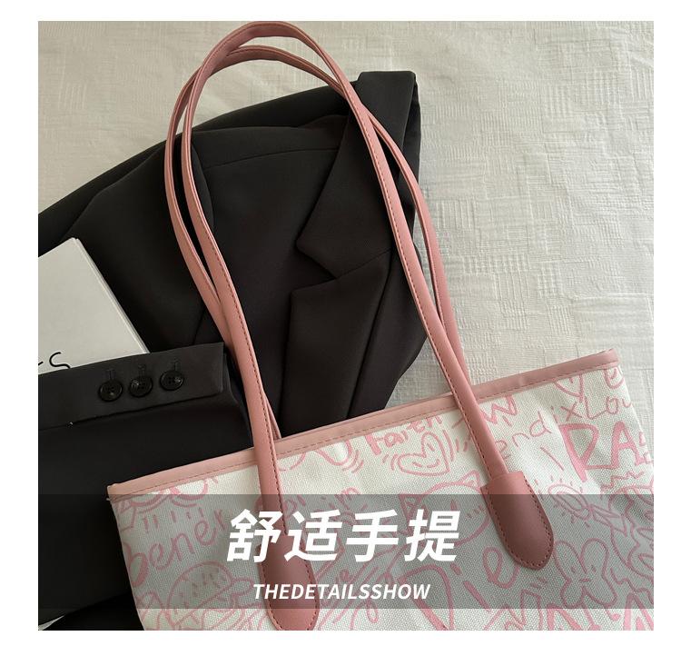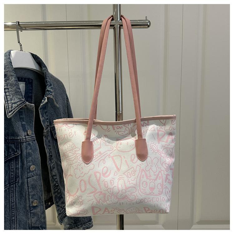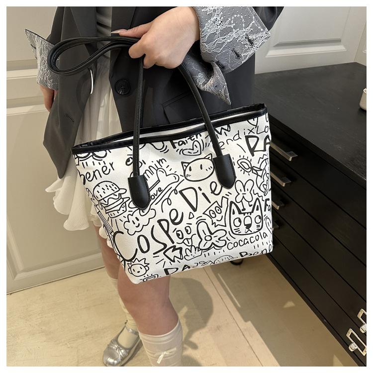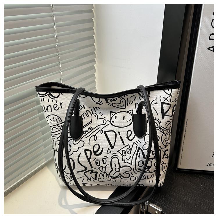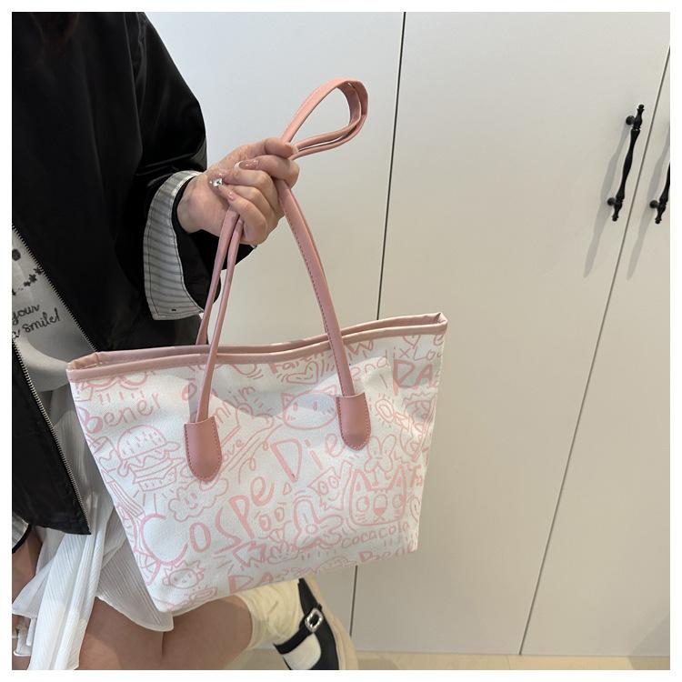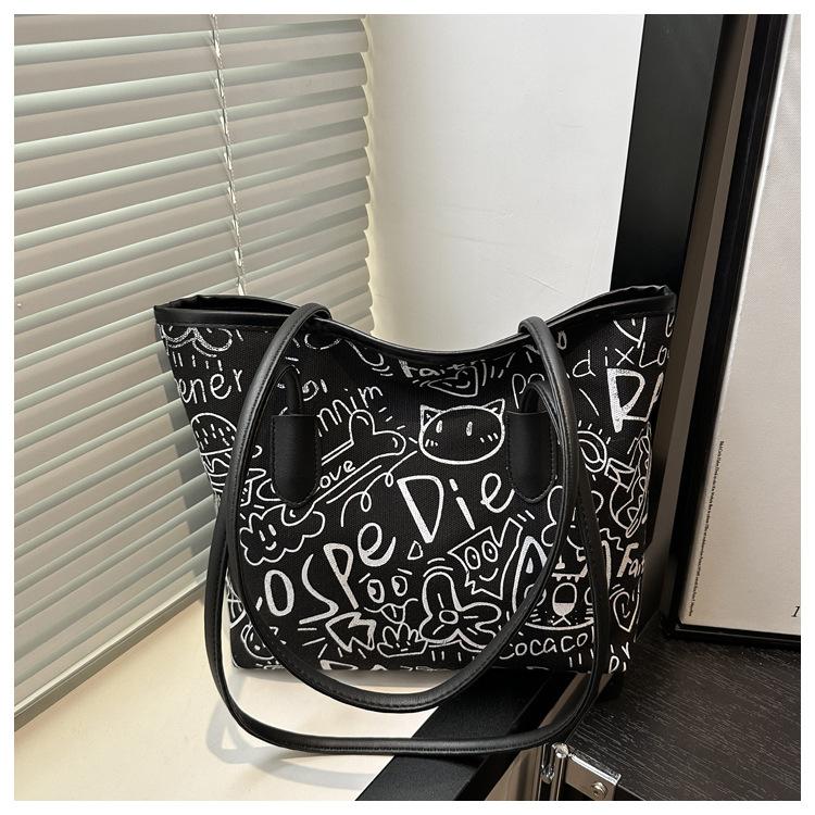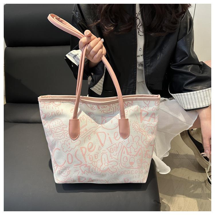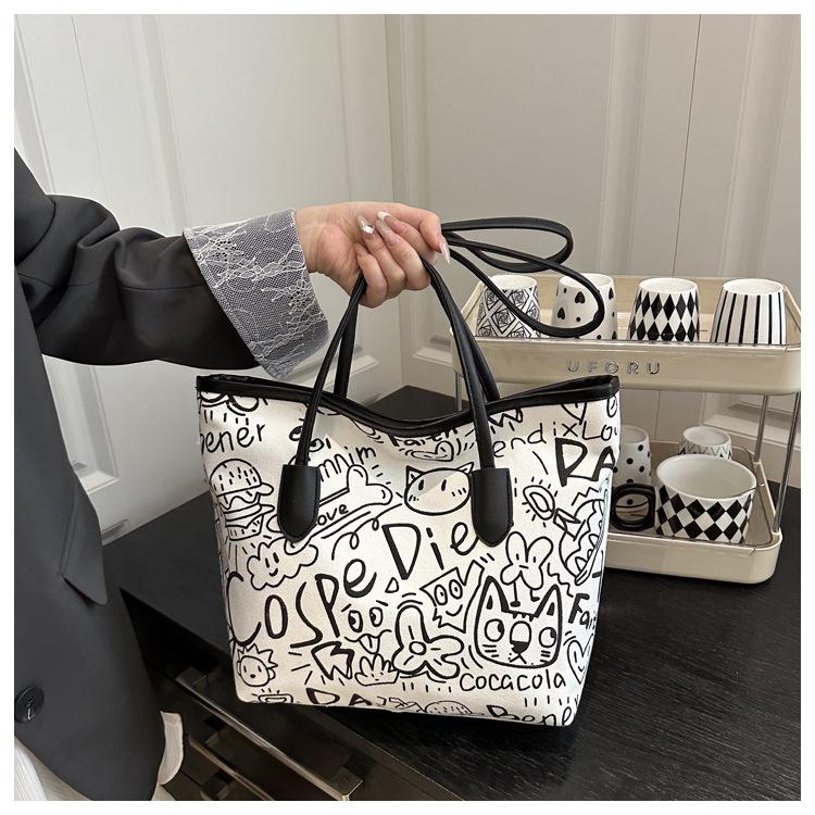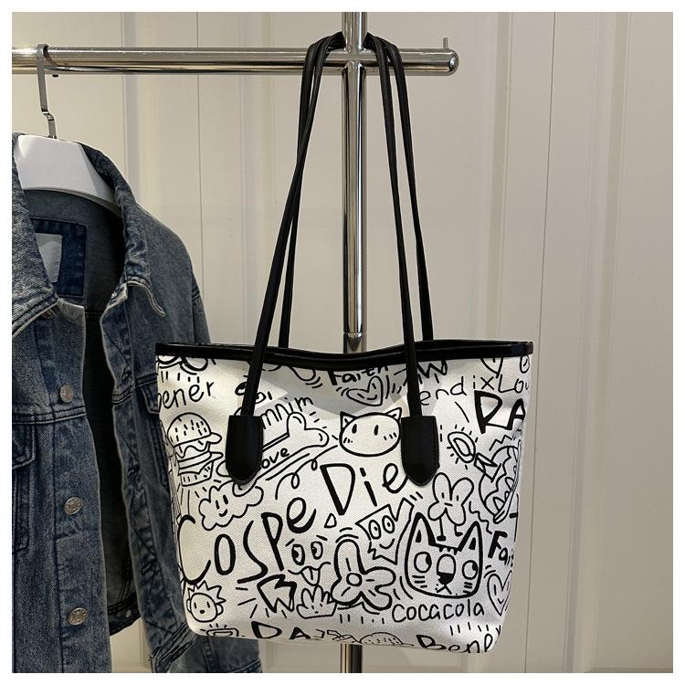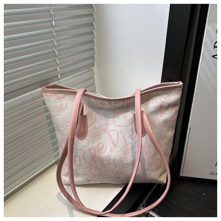 Bolso Verano Mujer 20245 Letras Graffiti Bolso de Hombro Viajero para el Trabajo Bolso de Mano Bolso Tote de Gran Capacidad Estampado