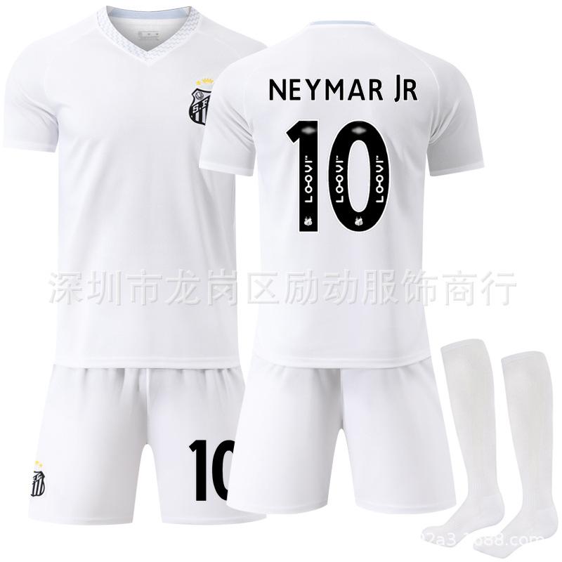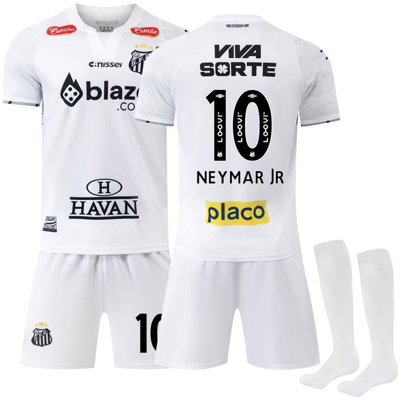 2526 Ropa Deportiva No. 10 Jersey Neymar Blanco Liga de Brasil Club Santos Uniforme de Fútbol Local