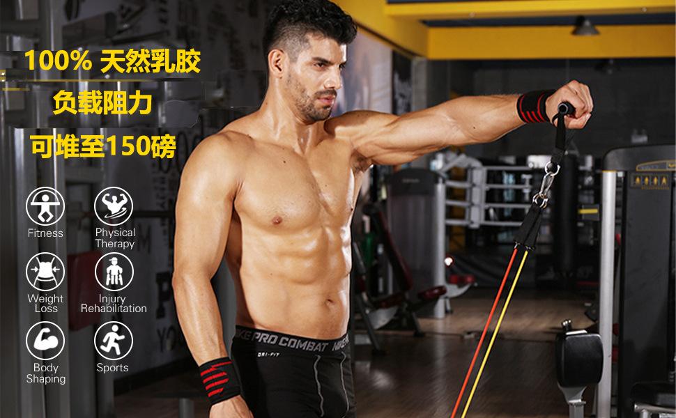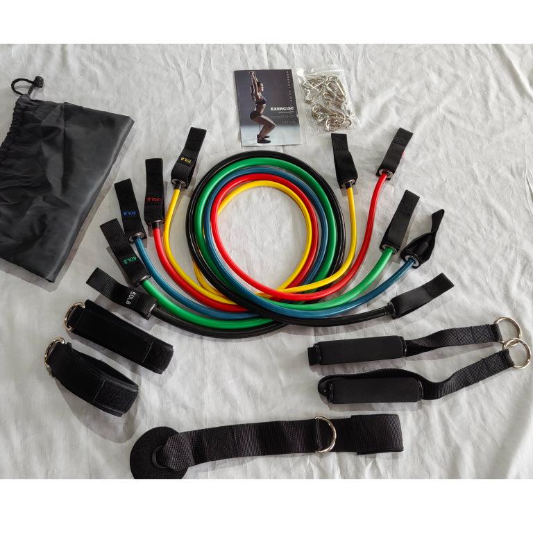 Dispositivo de tensión multifunción de látex natural en stock, cinturón de resistencia para deportes, cuerda de tensión de fitness combinada de 11 piezas.