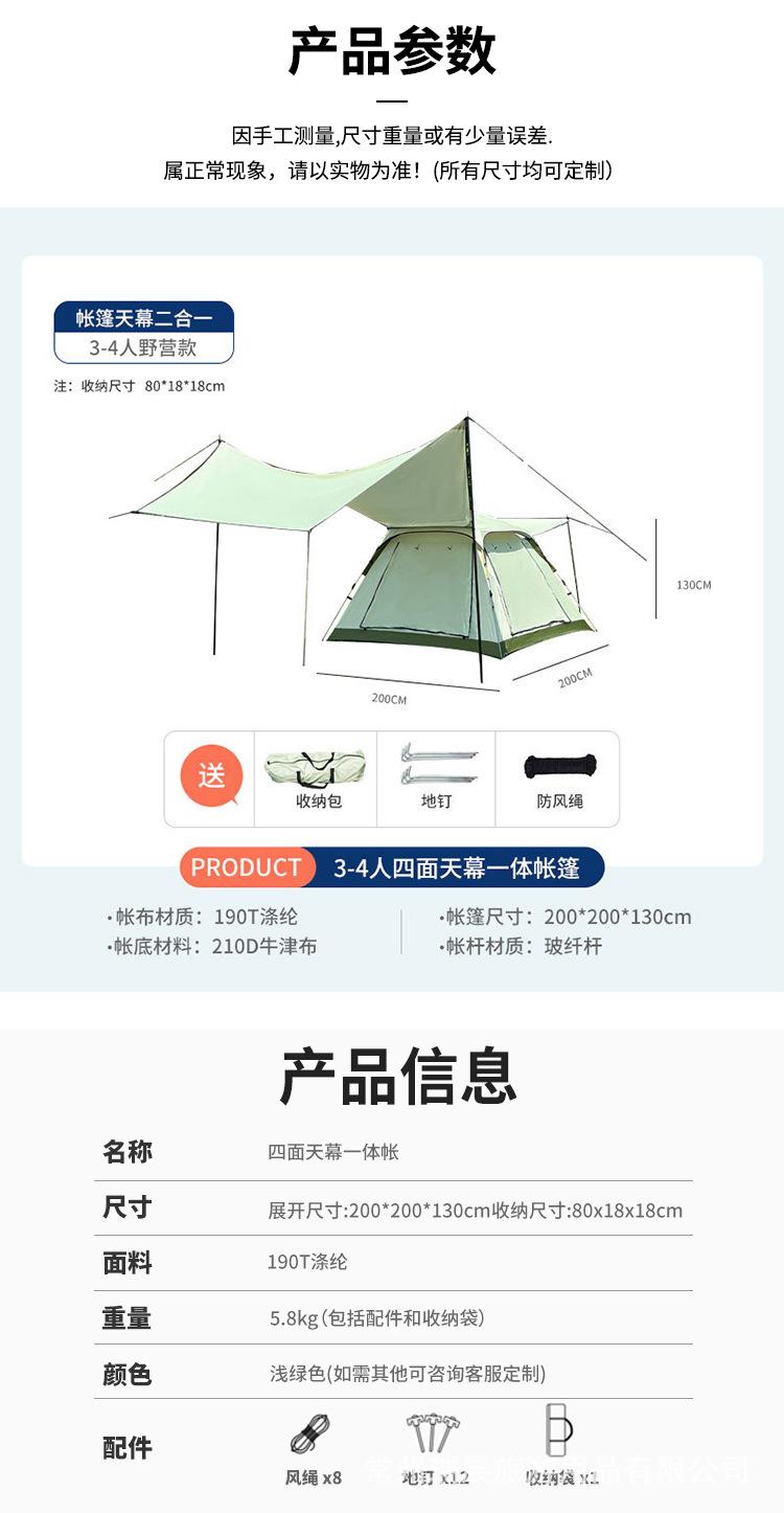 Carpa de Dosel para Exterior Estilo Camping Dos en Uno 3-4 Personas Totalmente Automática Toldo para Parque Exterior Equipo de Apertura Rápida Libre