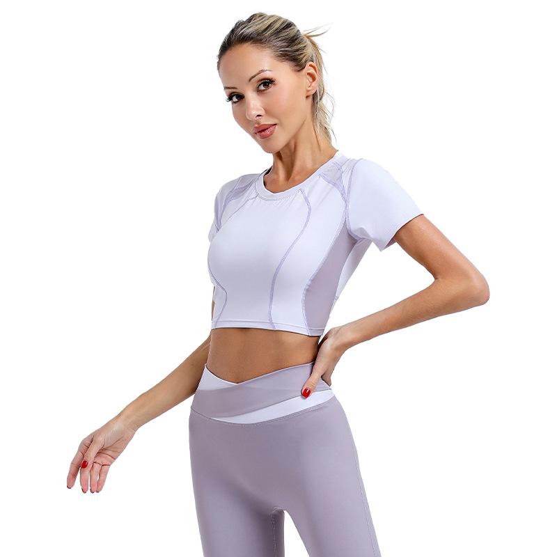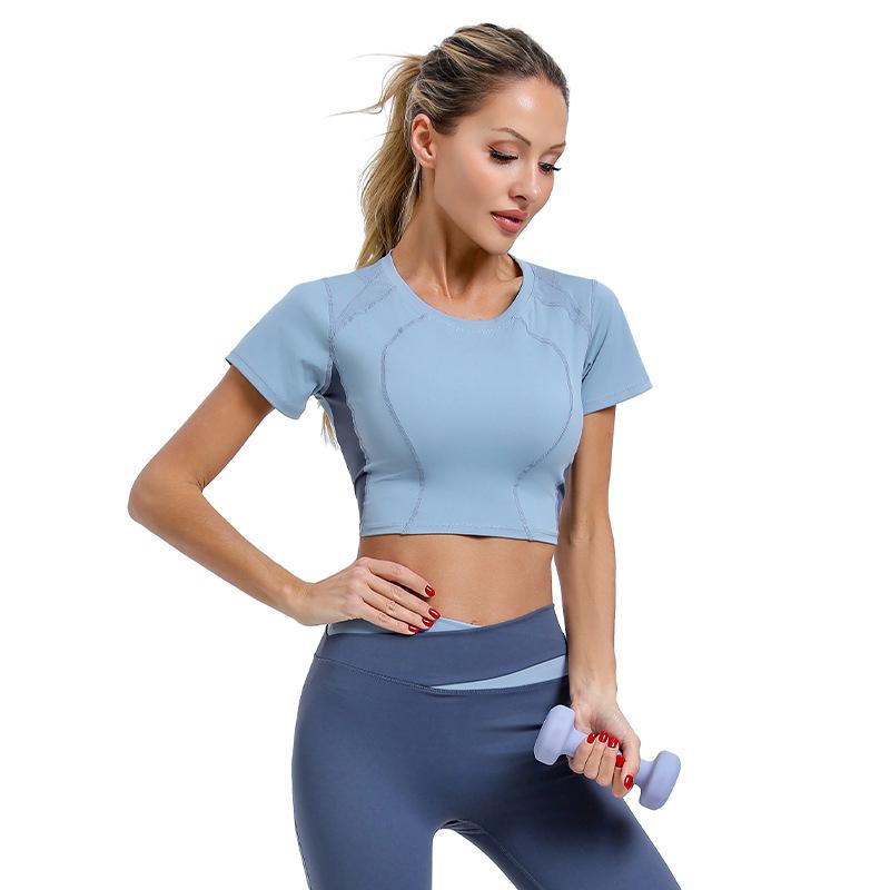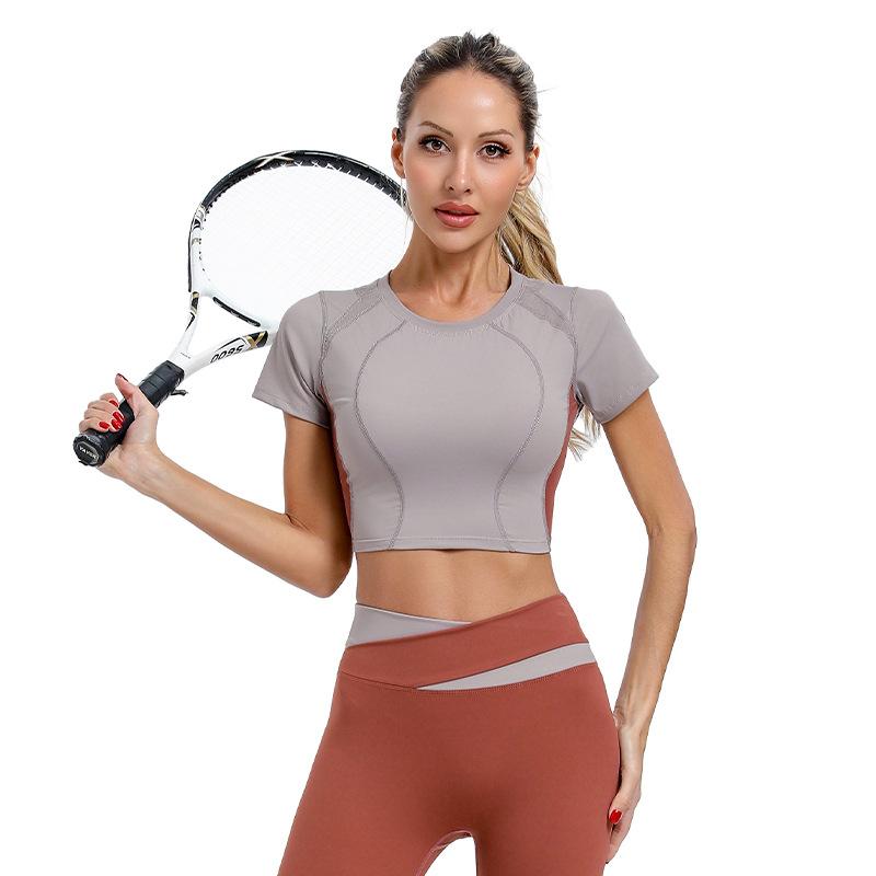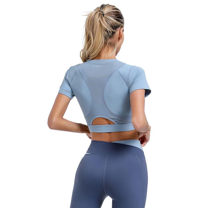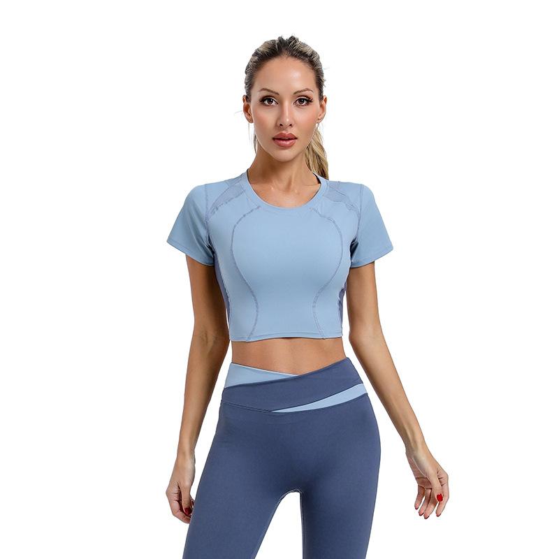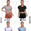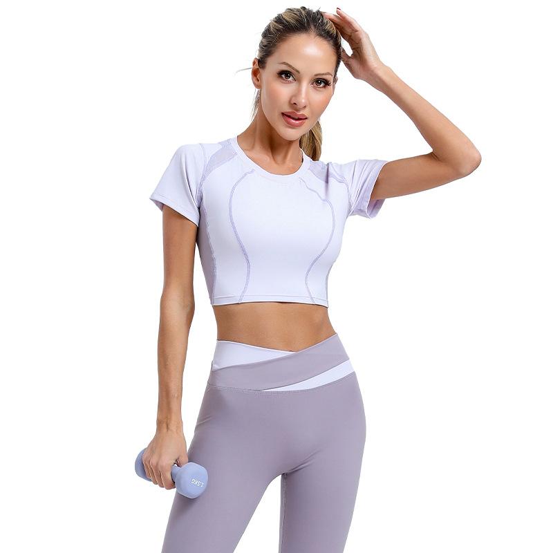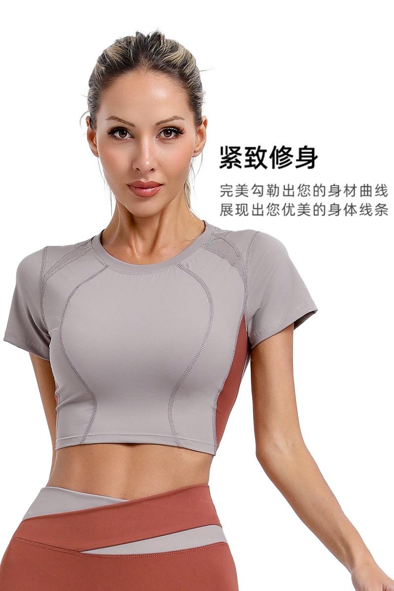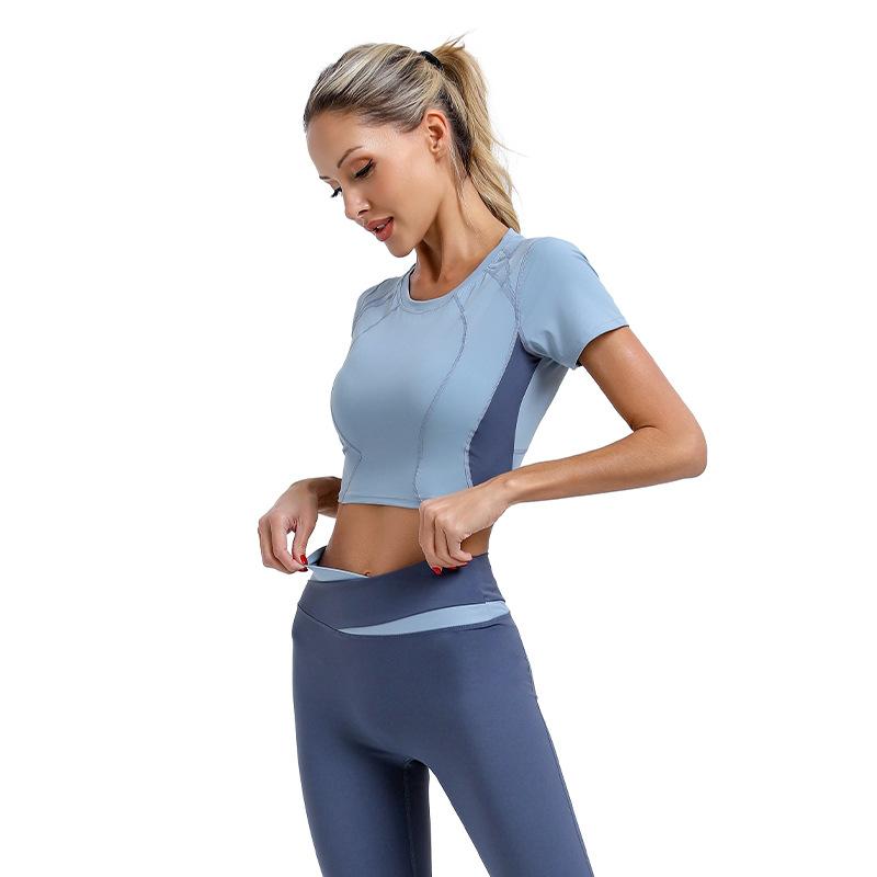 Traje de Yoga Cruzado a Color de Contraste Cintura Alta Traje Deportivo de Fitness Yoga Ajustado de Alta Elasticidad Levantamiento de Cadera Top de Manga Corta para Yoga