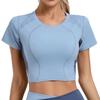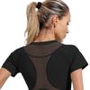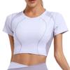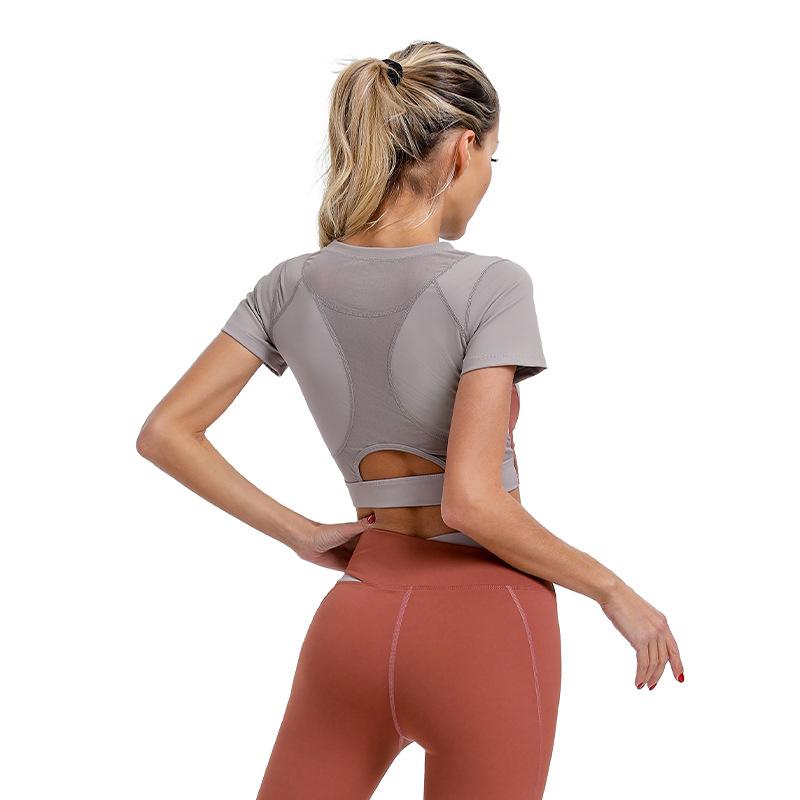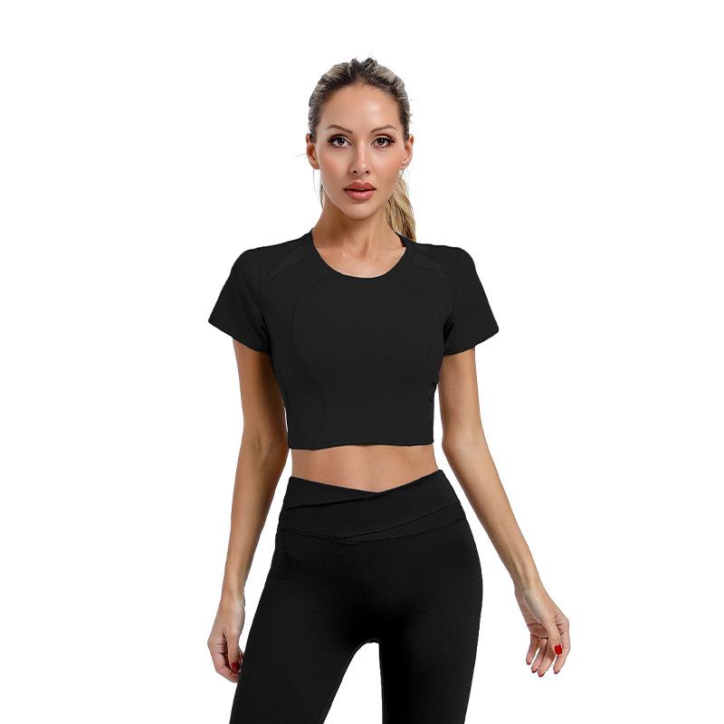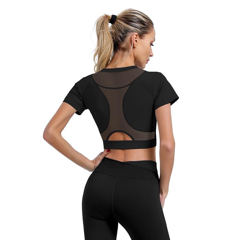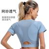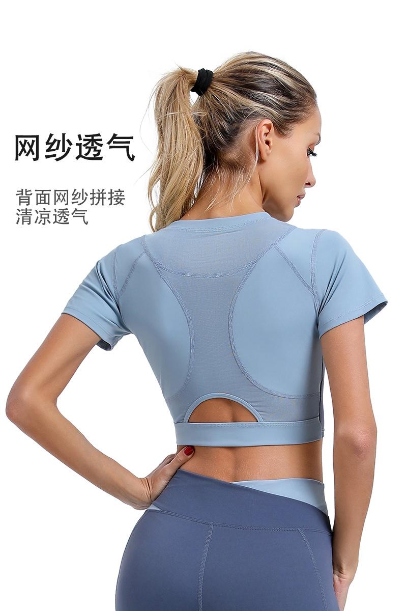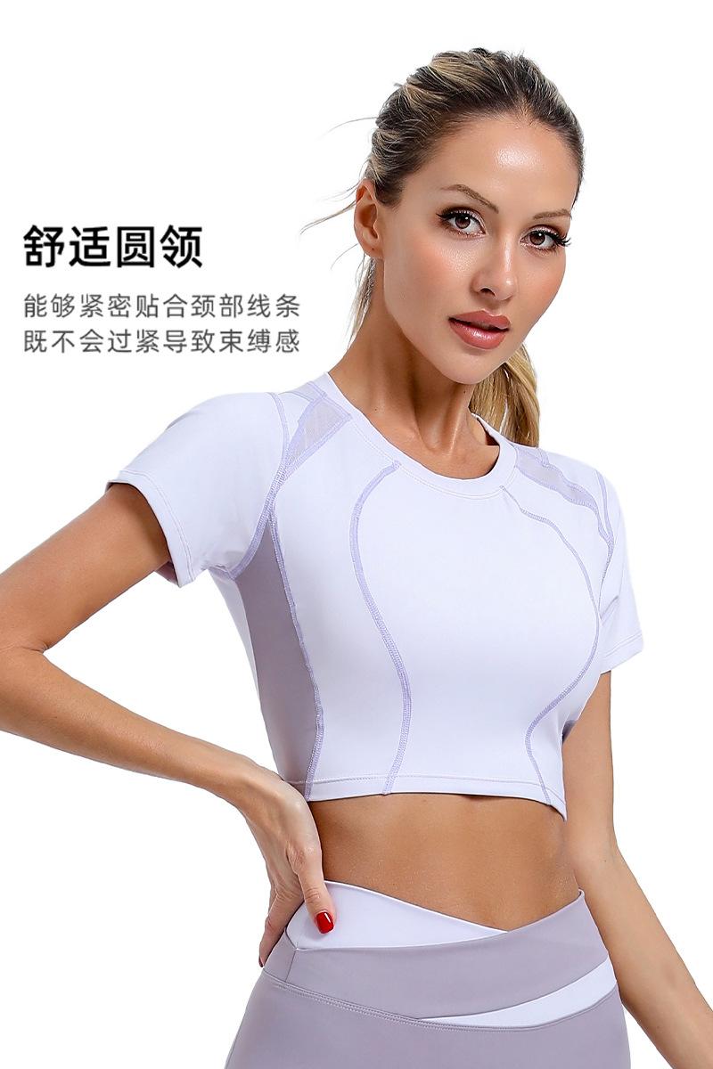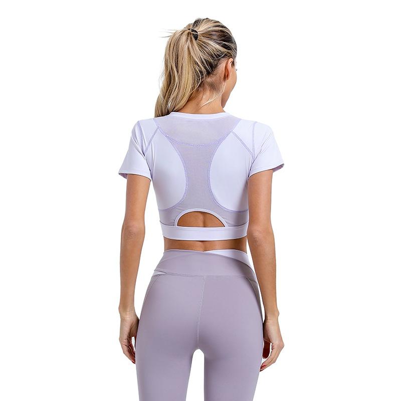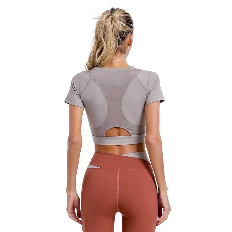 Traje de Yoga Cruzado a Color de Contraste Cintura Alta Traje Deportivo de Fitness Yoga Ajustado de Alta Elasticidad Levantamiento de Cadera Top de Manga Corta para Yoga