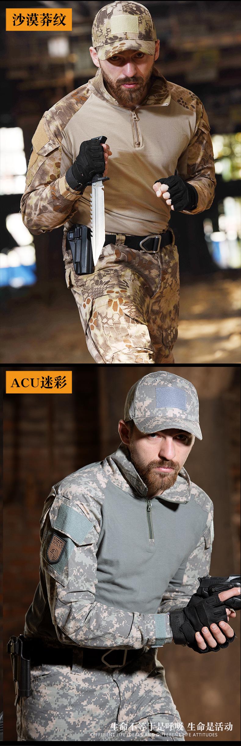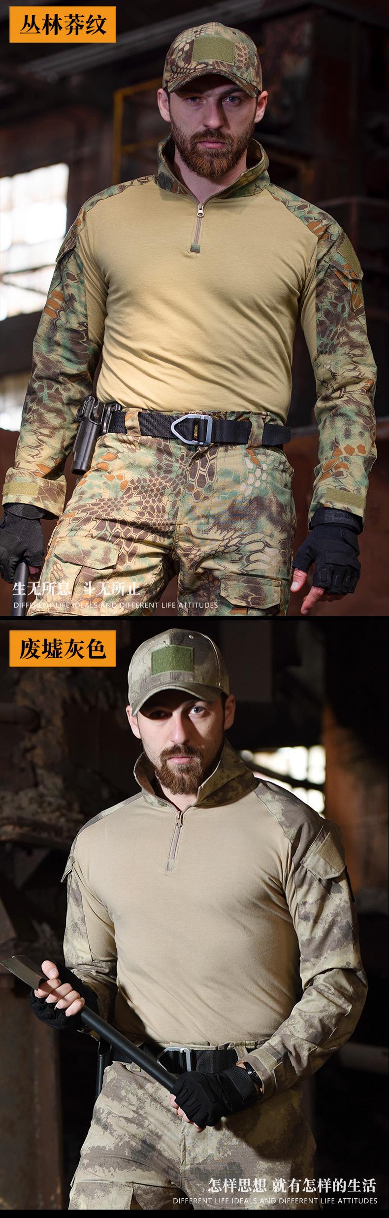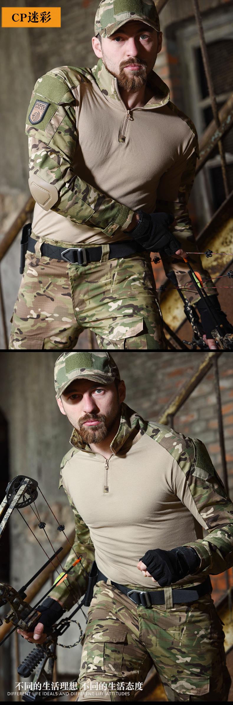 Traje de rana para exteriores Hye de manga larga, traje táctico de entrenamiento sin equipo de protección, resistente al desgaste, transpirable, traje de camuflaje, traje de entrenamiento superior al por mayor