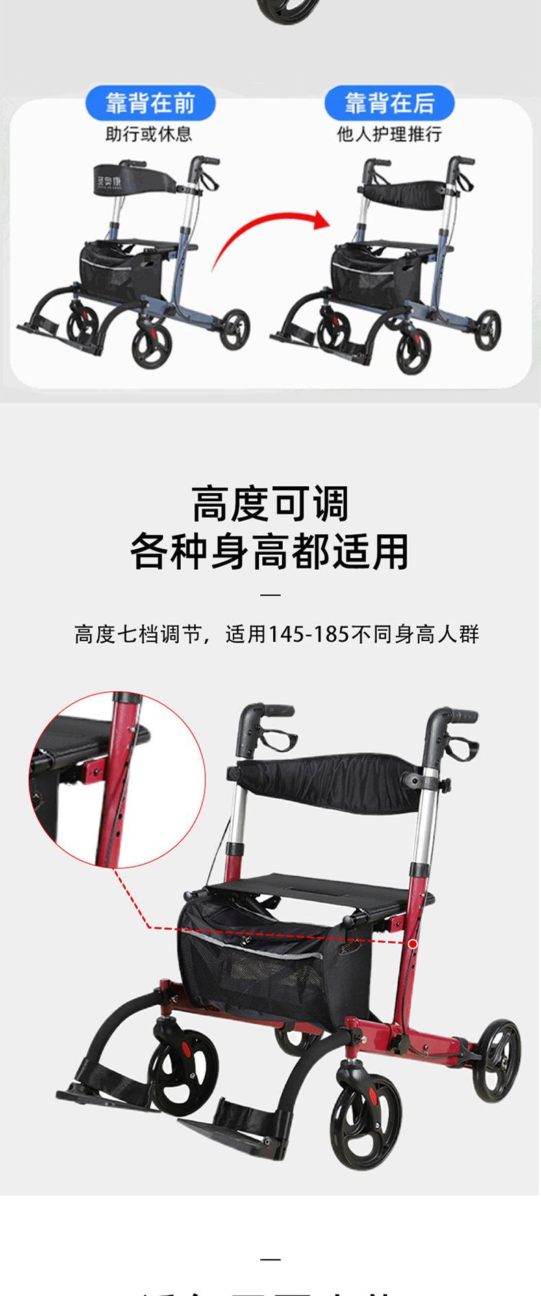 Andador para silla de ruedas personalizado Dos en uno Andador auxiliar Carrito para ancianos Plegable Ligero Scooter pequeño