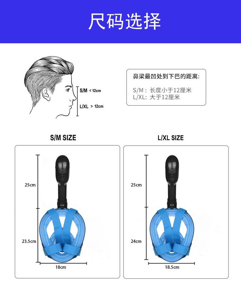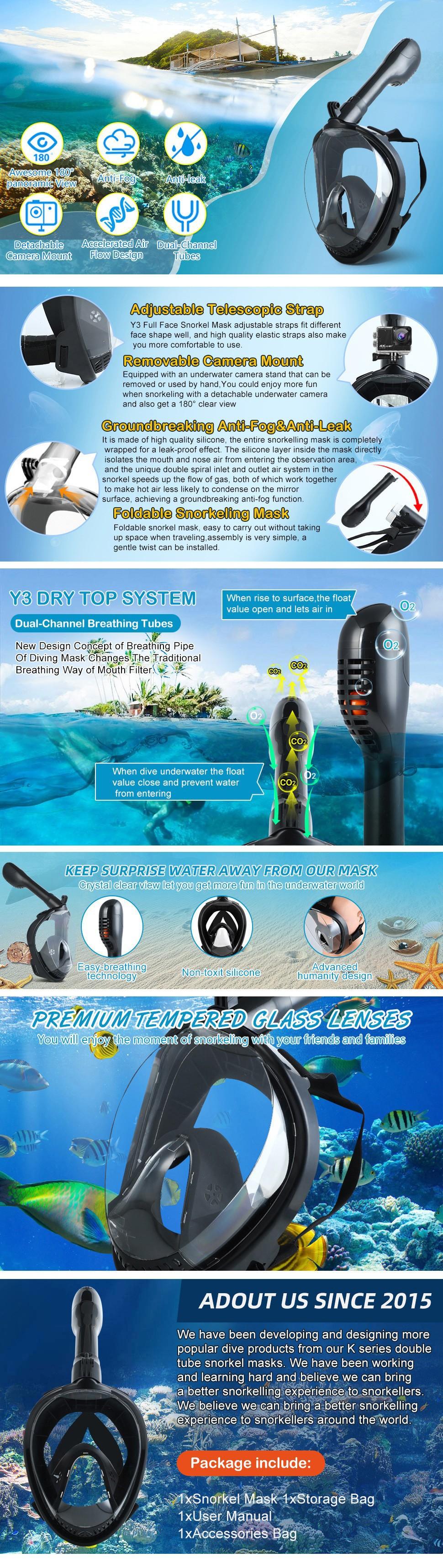 Máscara de buceo transfronteriza de silicona de cara completa impermeable antivaho máscara de esnórquel totalmente seca vista panorámica máscara de esnórquel