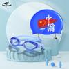 Black [swimming cap + swimming goggles + nose clip and earplugs]
