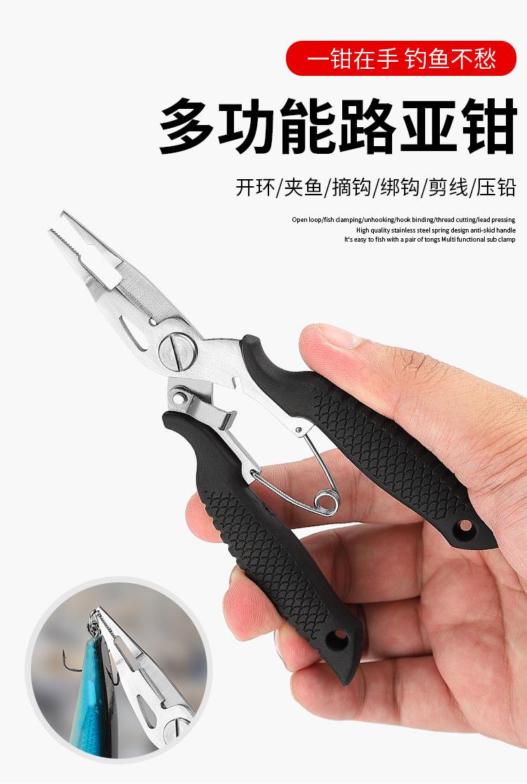 Alicates multifuncionales personalizados para microseñuelos, de acero inoxidable, para quitar anzuelos, para cortar sedal de señuelos al aire libre, dispositivo de control de peces, herramientas de pesca.