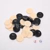 La configuración estándar es 15 negros + 15 blanco hueso + 2 dados de puntos de colores tamaño 10