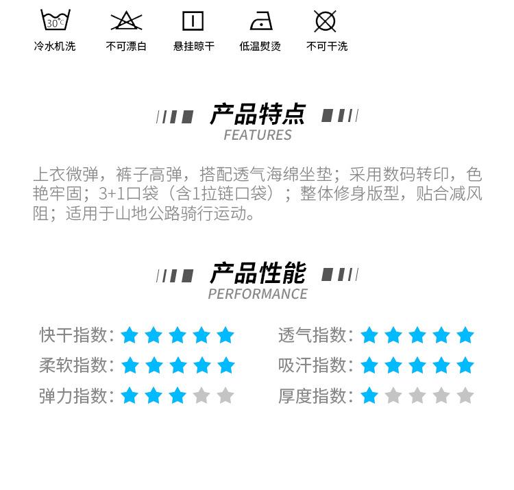 Función(功能) Transpirable(透气) / Secado Rápido(快干) / Diseño Anatómico(三维立体剪裁) / Absorbente(吸湿排汗)