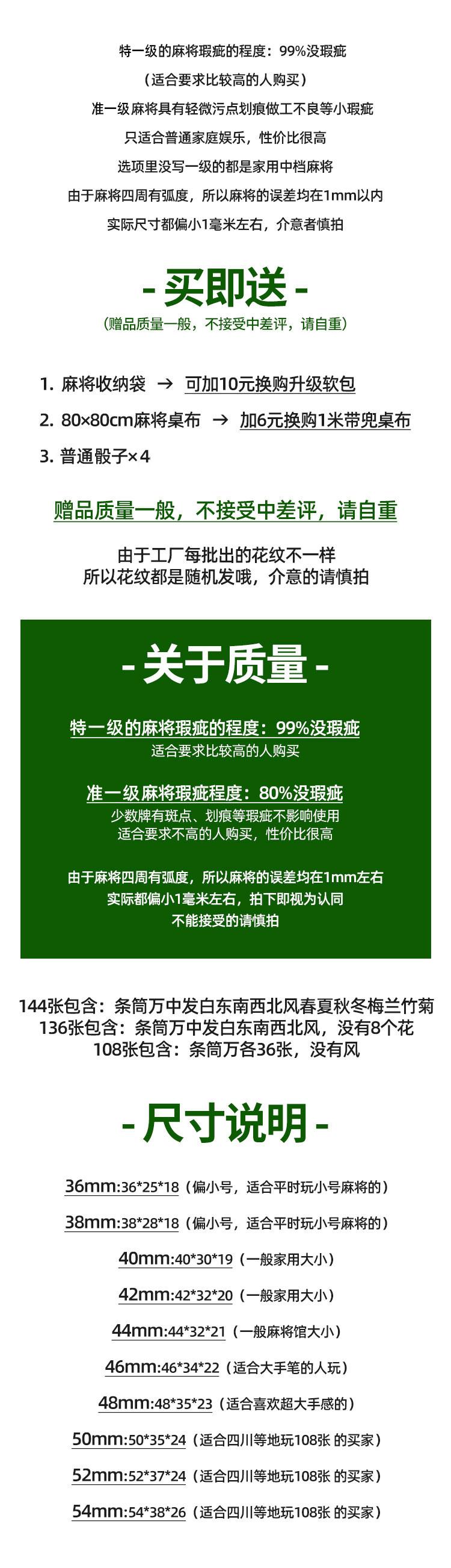 Mahjong Pai Hogar Mediano Grande Mano Mahjong Guangdong 40#42#44# Sichuan 108 Mano Mahjong