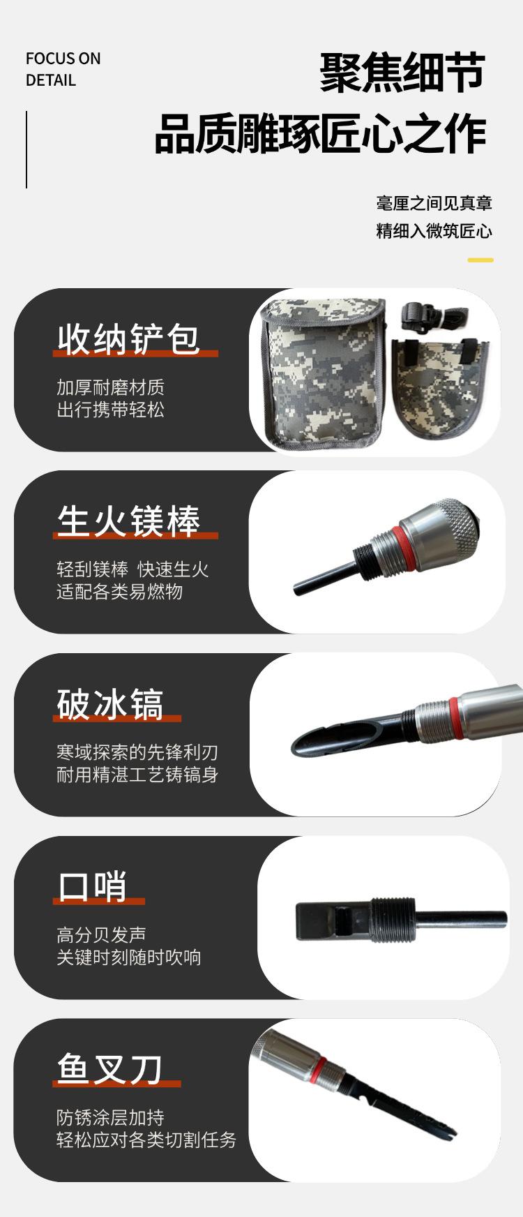 Nuevo Juego Combinado de Pala de Ingeniero Multifuncional de Acero Inoxidable de Minghui Equipment Herramienta de Rescate para Montaje en Vehículo Pala para Pesca al Aire Libre