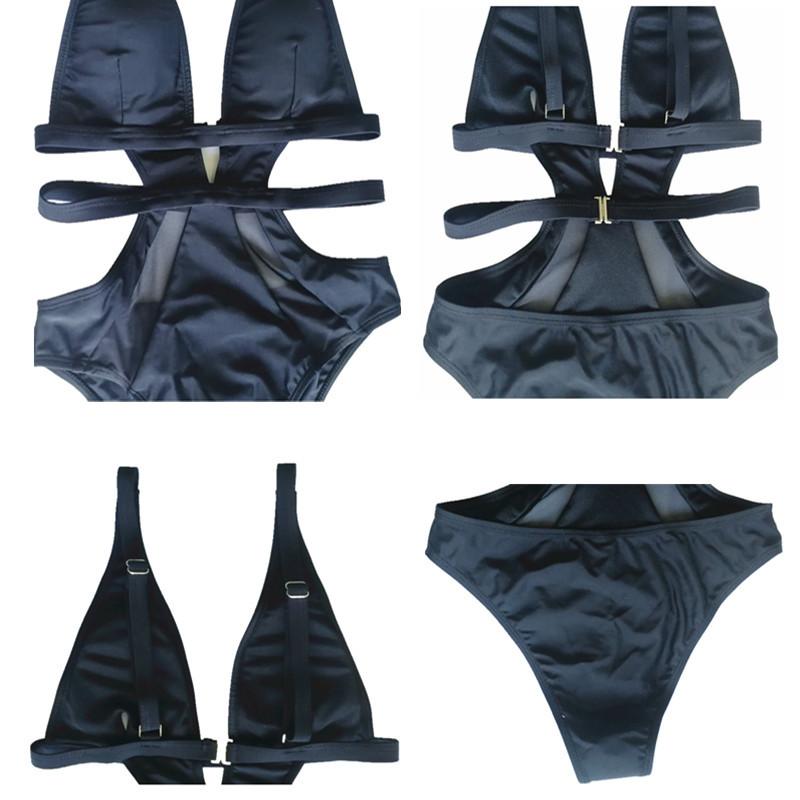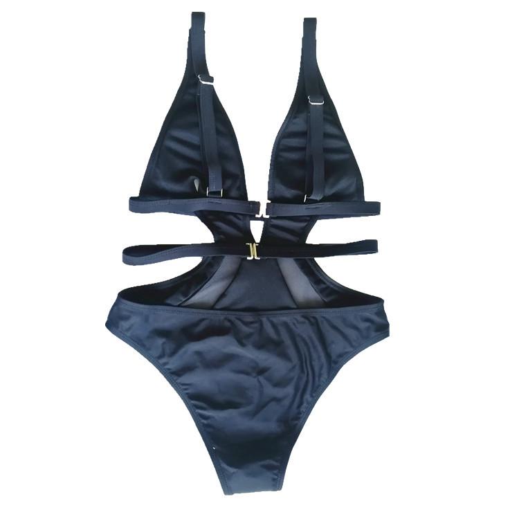 Venta al por mayor transfronteriza Europeo y Americano Nuevo Extranjero bikini triángulo de una pieza sexy sin espalda hueco con costuras de hilo para mujer