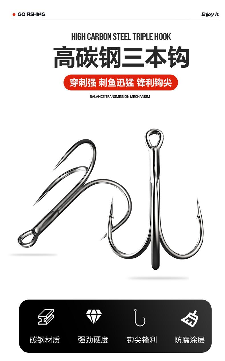 Taiyu níquel negro acero de alto carbono tres anzuelos anzuelo Luya anzuelo triple de ancla versión reforzada con púas pesca marítima anzuelo triple al por mayor